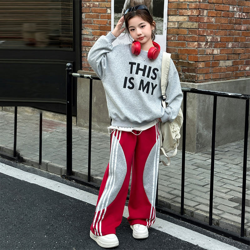 소녀 세트 2025 봄과 가을 새로운 어린이 캐주얼 착용 느슨한 스포츠 바지 시원하고 거친 투피스 세트스토어 가기