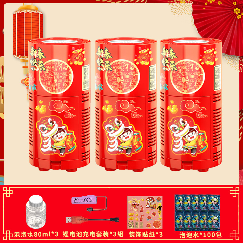 • 1개 = 폭죽 + 불꽃놀이 + 버블머신 - (대형 3개) [USB 충전식 버전] 13홀 버블머신 [80ML 버블수*3+100팩 농축