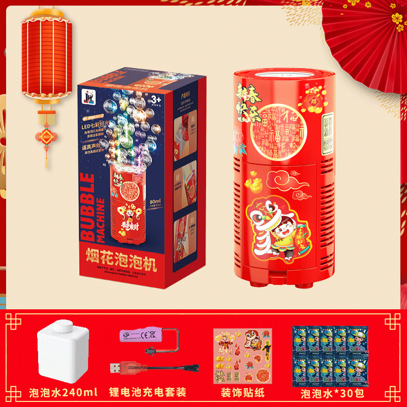 • 1개 = 폭죽 + 불꽃놀이 + 버블 머신 - 업그레이드된 39홀 불꽃놀이 버블 머신 [리튬 배터리 + 240ML 버블 워터 + 스티커 + 농축액 10개]