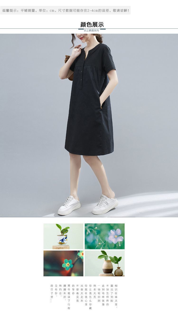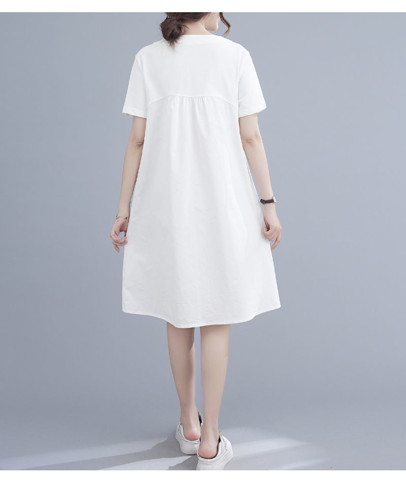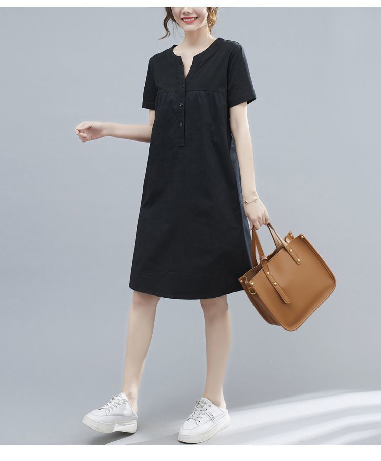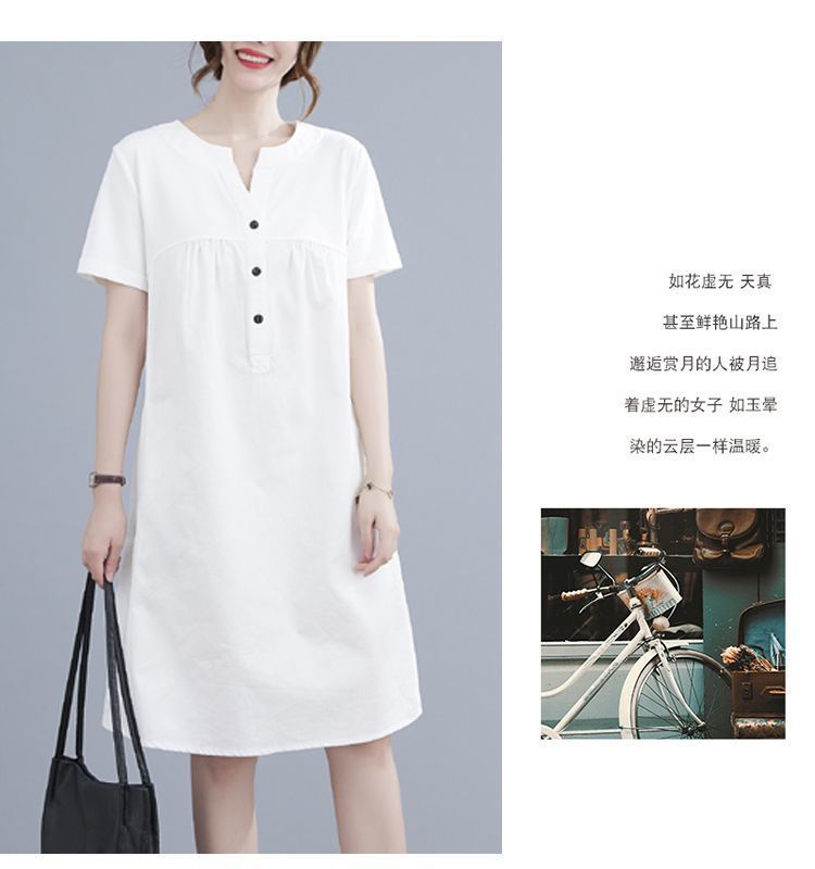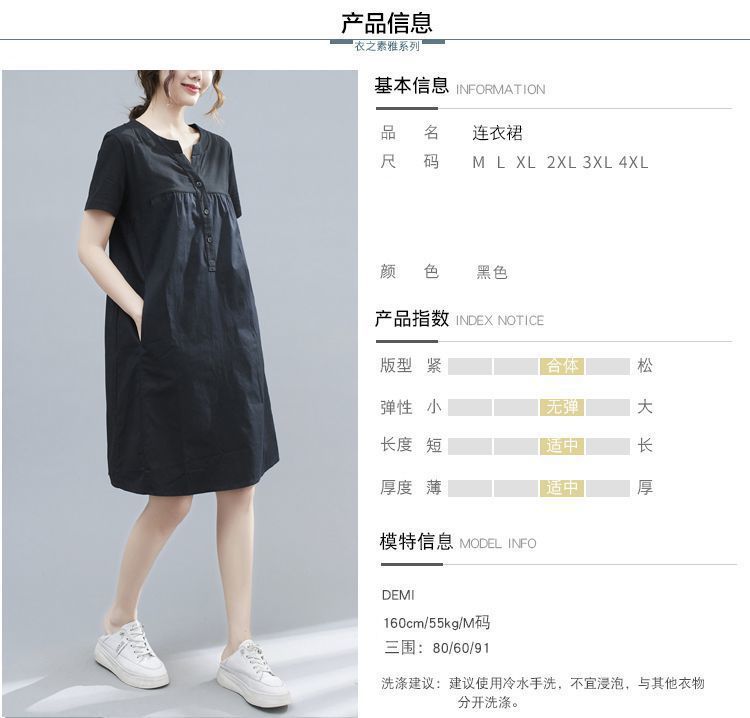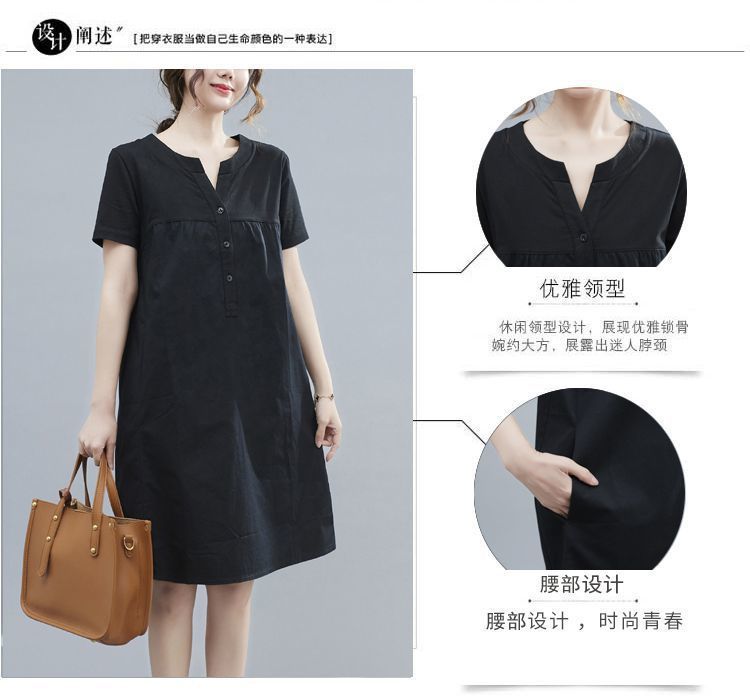 플러스 사이즈 원피스 미디 스티칭 통통녀 캐주얼 루즈 슬리밍 반팔 우아한 원피스 여성용 V 넥 원피스스토어 가기