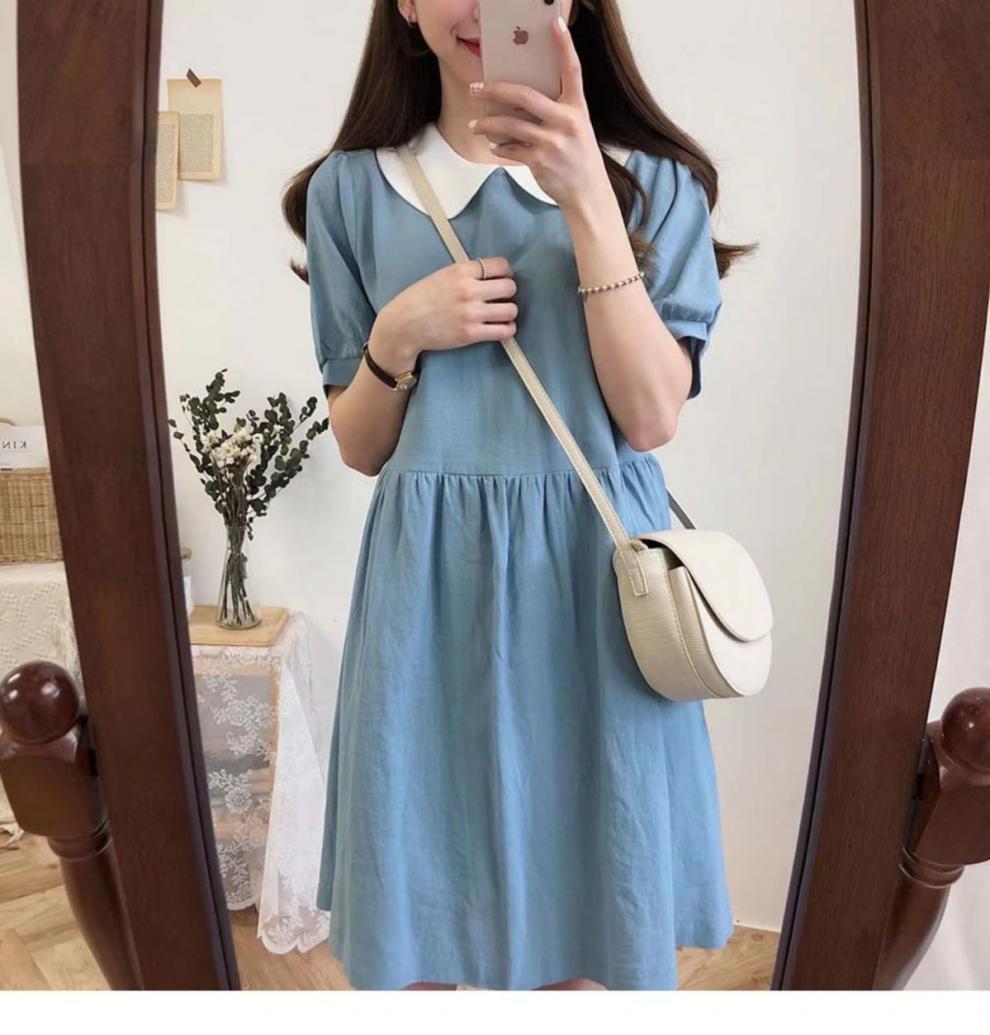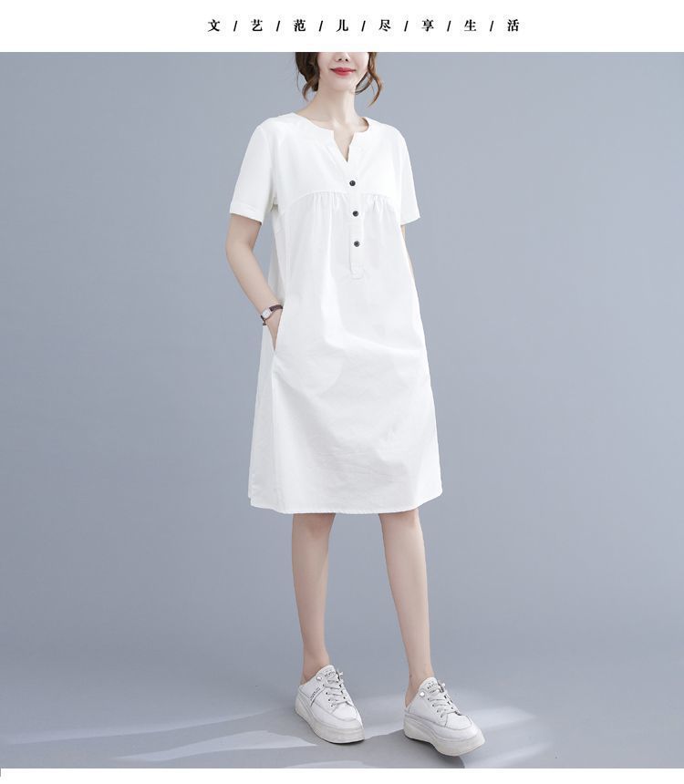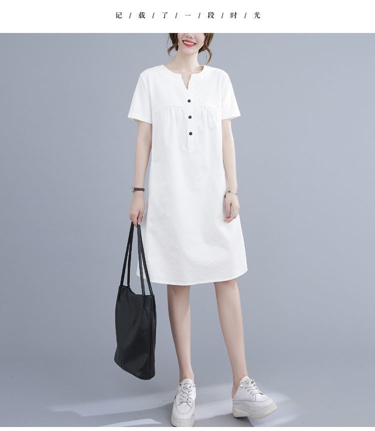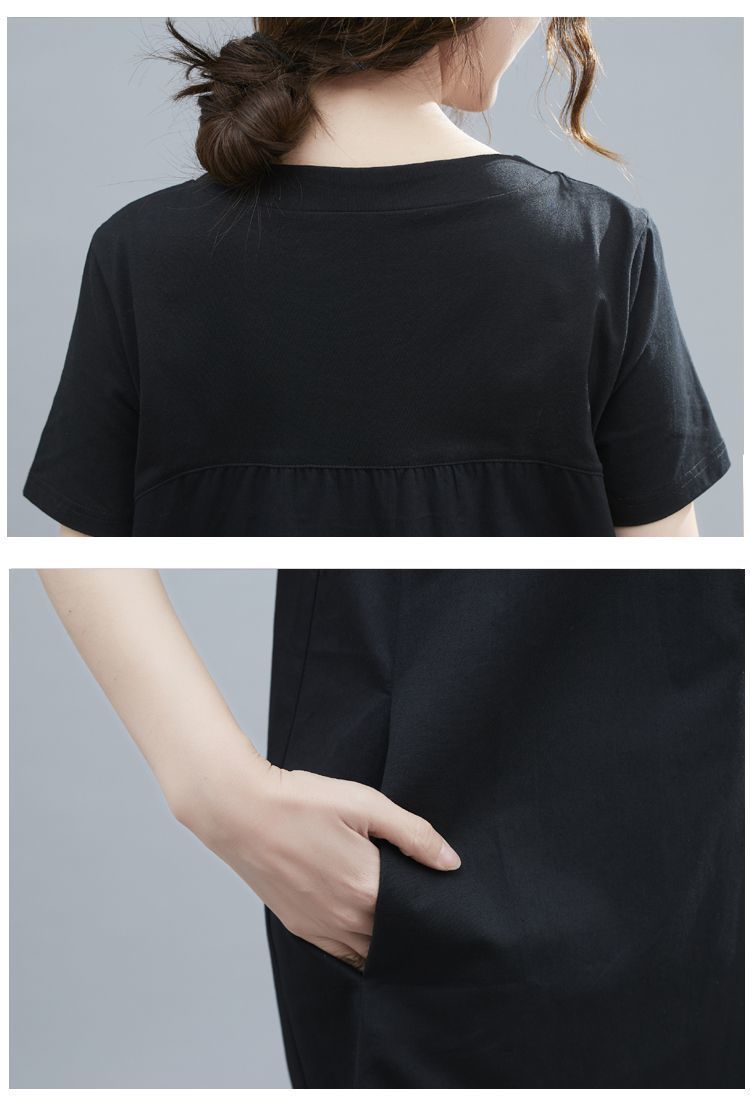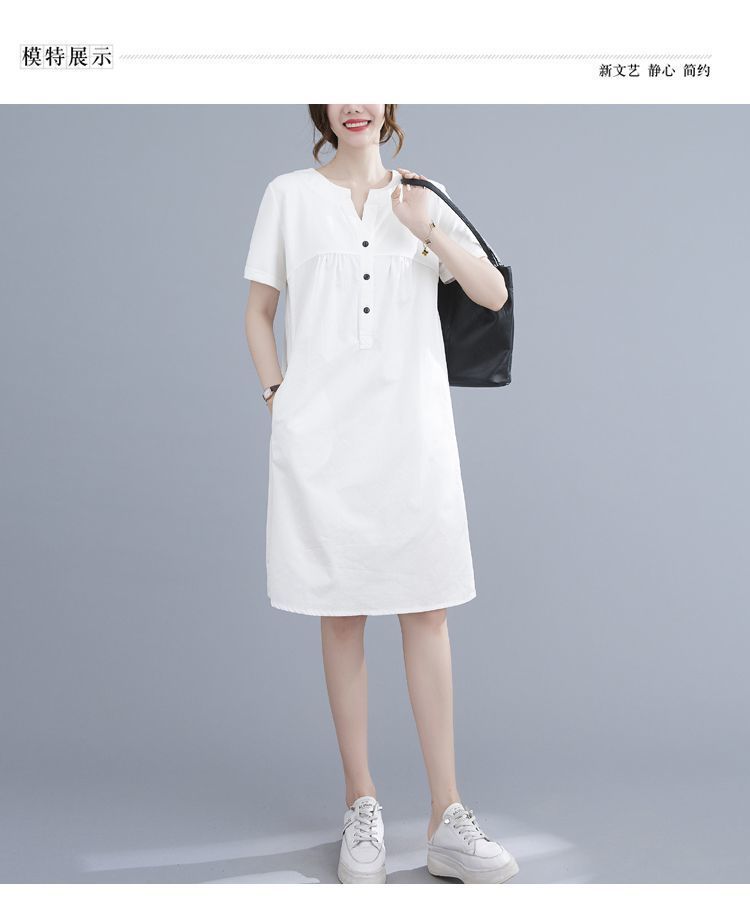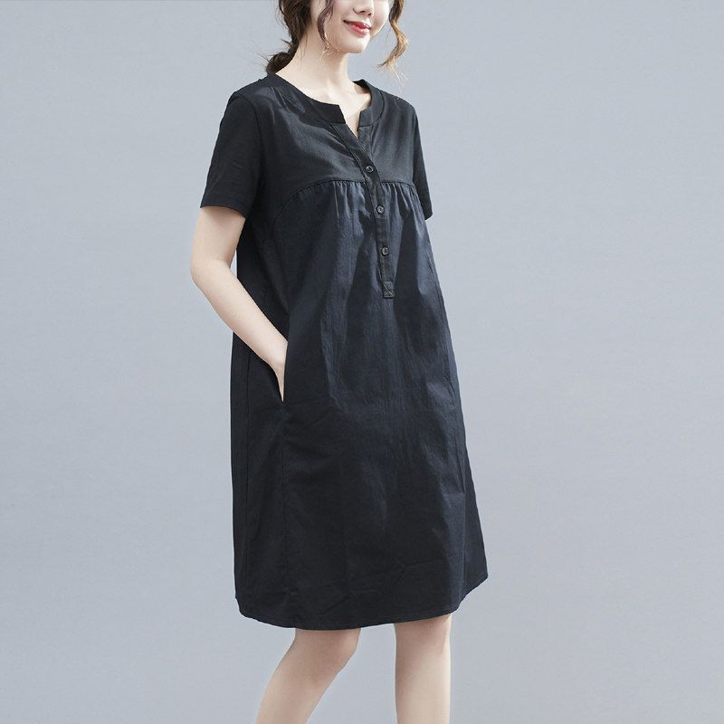 플러스 사이즈 원피스 미디 스티칭 통통녀 캐주얼 루즈 슬리밍 반팔 우아한 원피스 여성용 V 넥 원피스스토어 가기