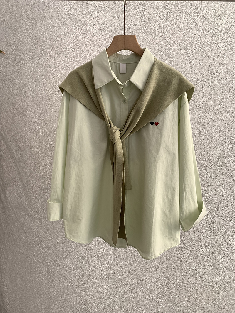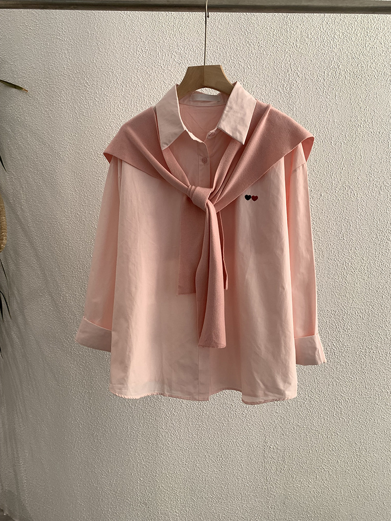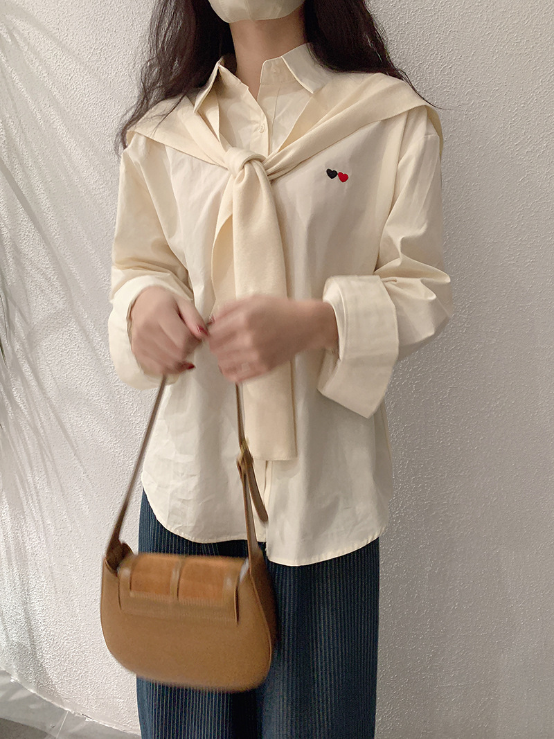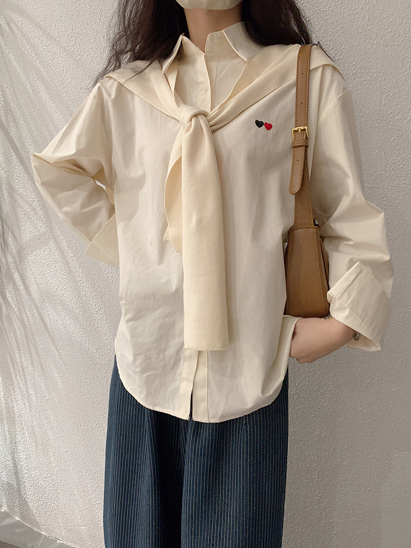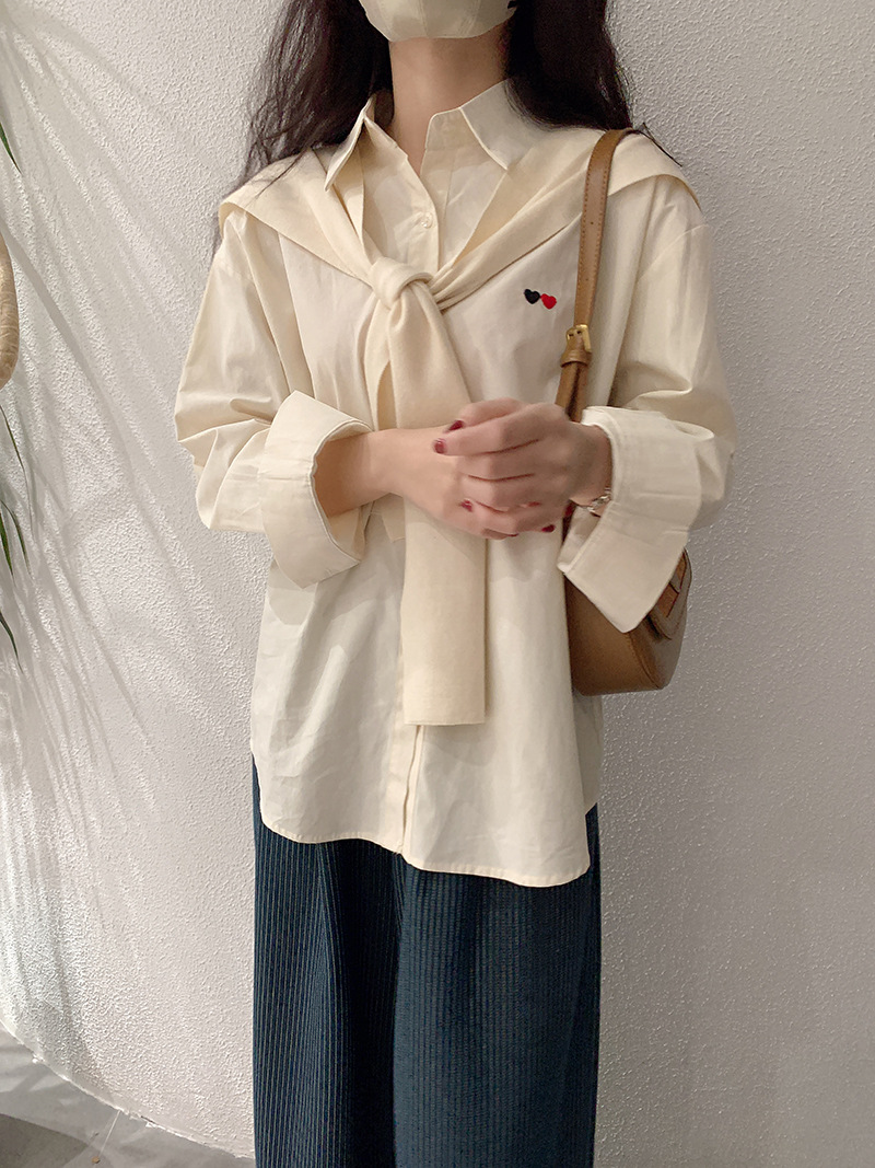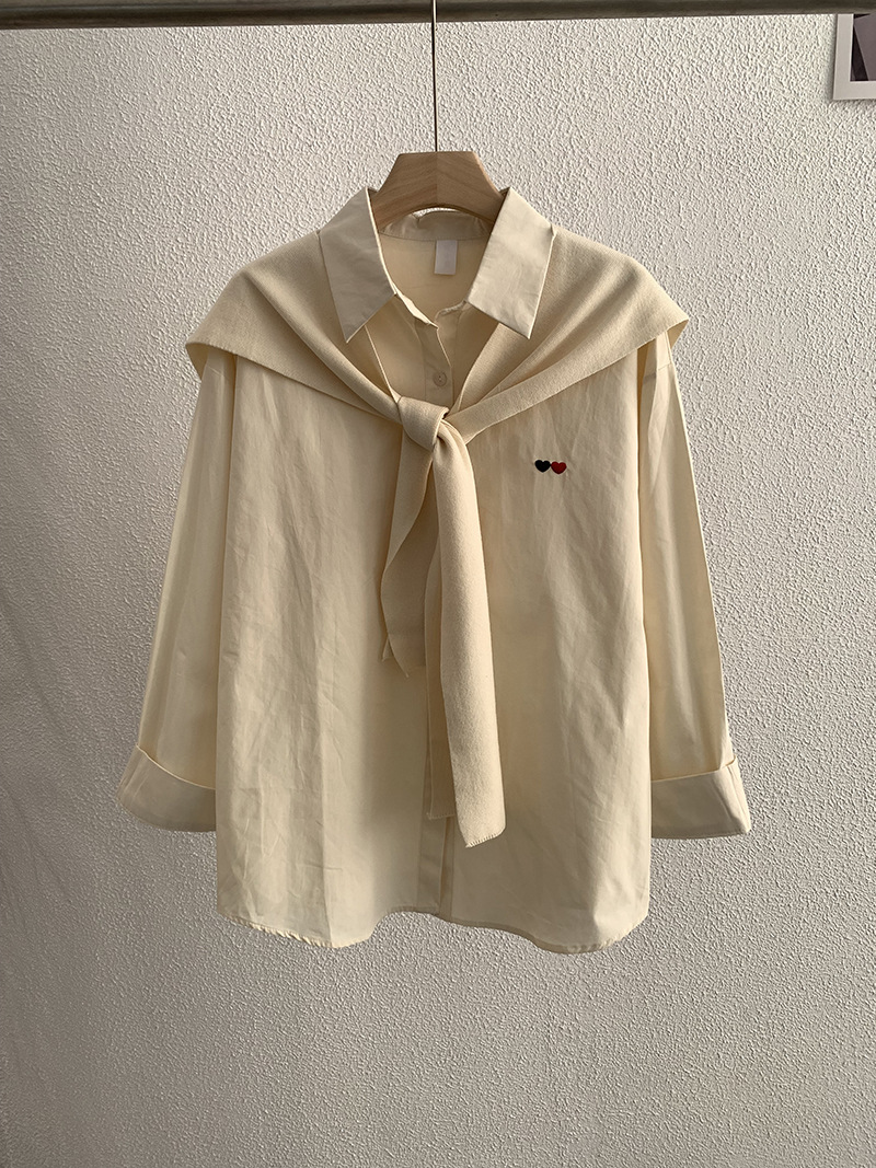 오우 마라이 사랑 자수 옷깃 긴 소매 셔츠 니트 목도리 2 피스 봄 여성 2205