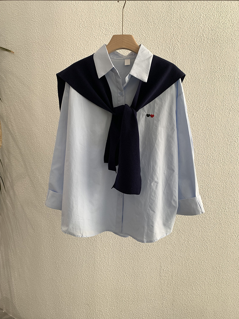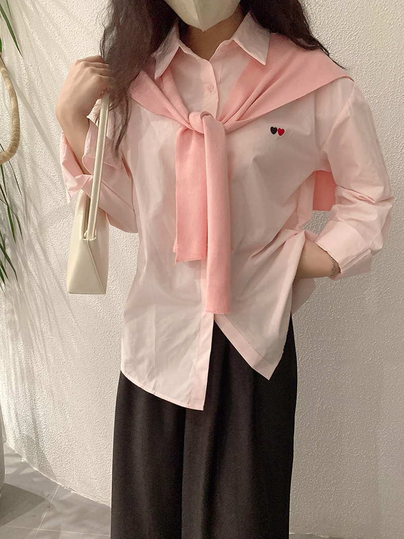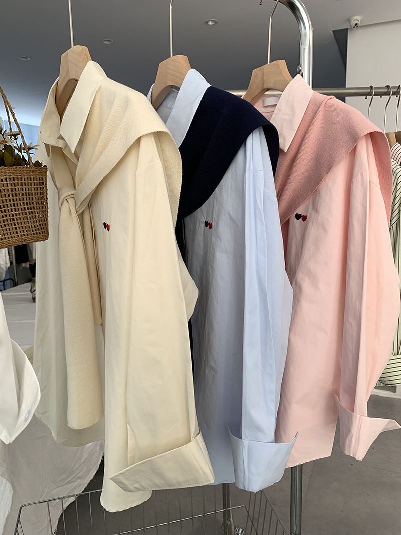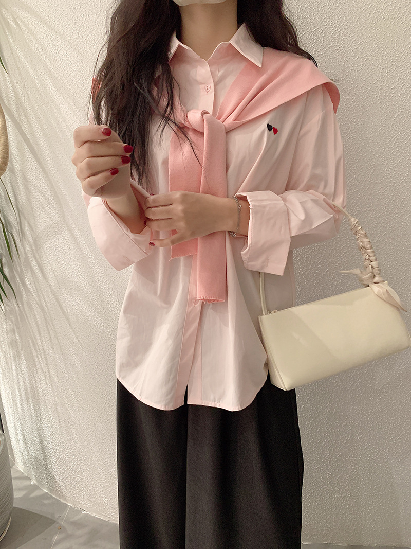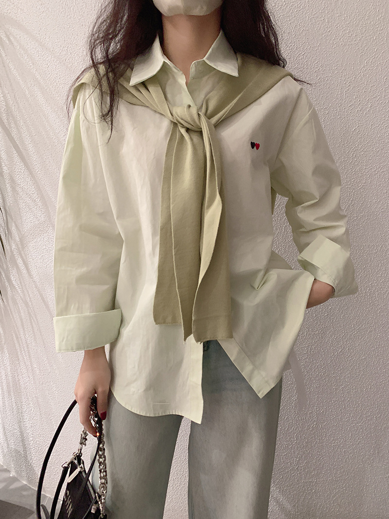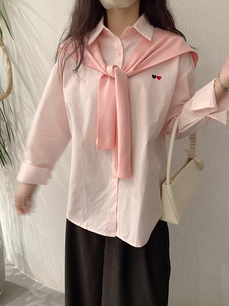 오우 마라이 사랑 자수 옷깃 긴 소매 셔츠 니트 목도리 2 피스 봄 여성 2205