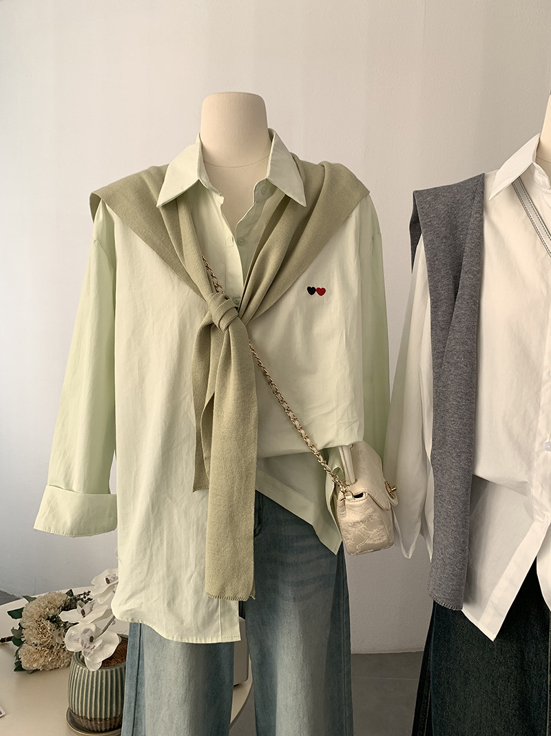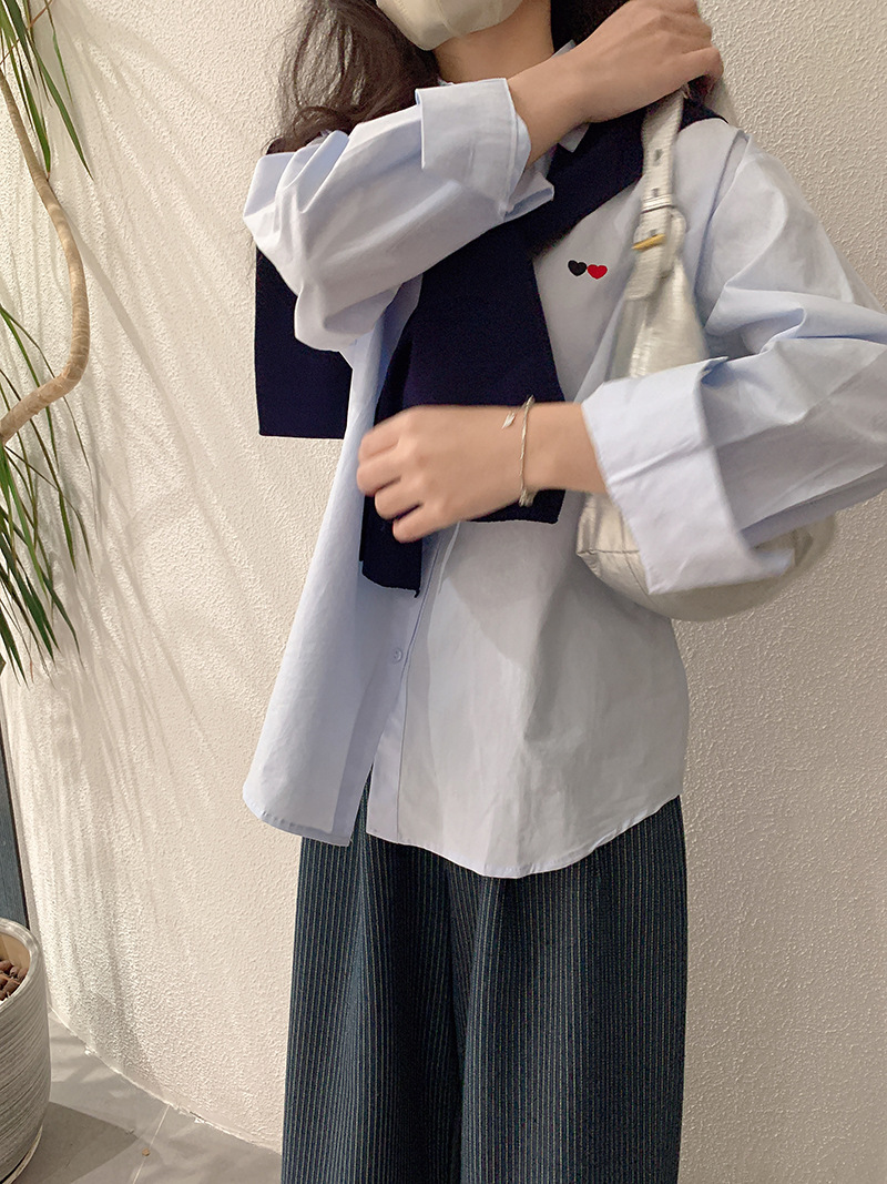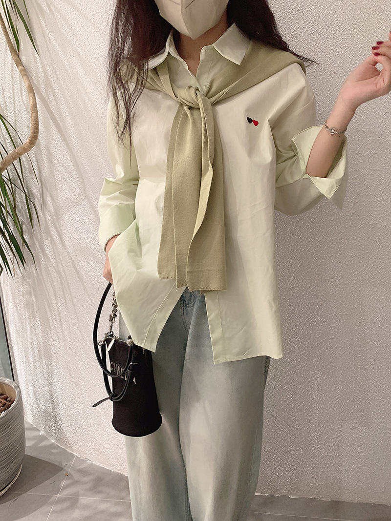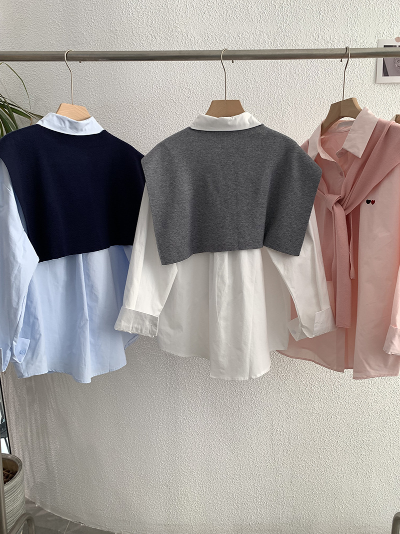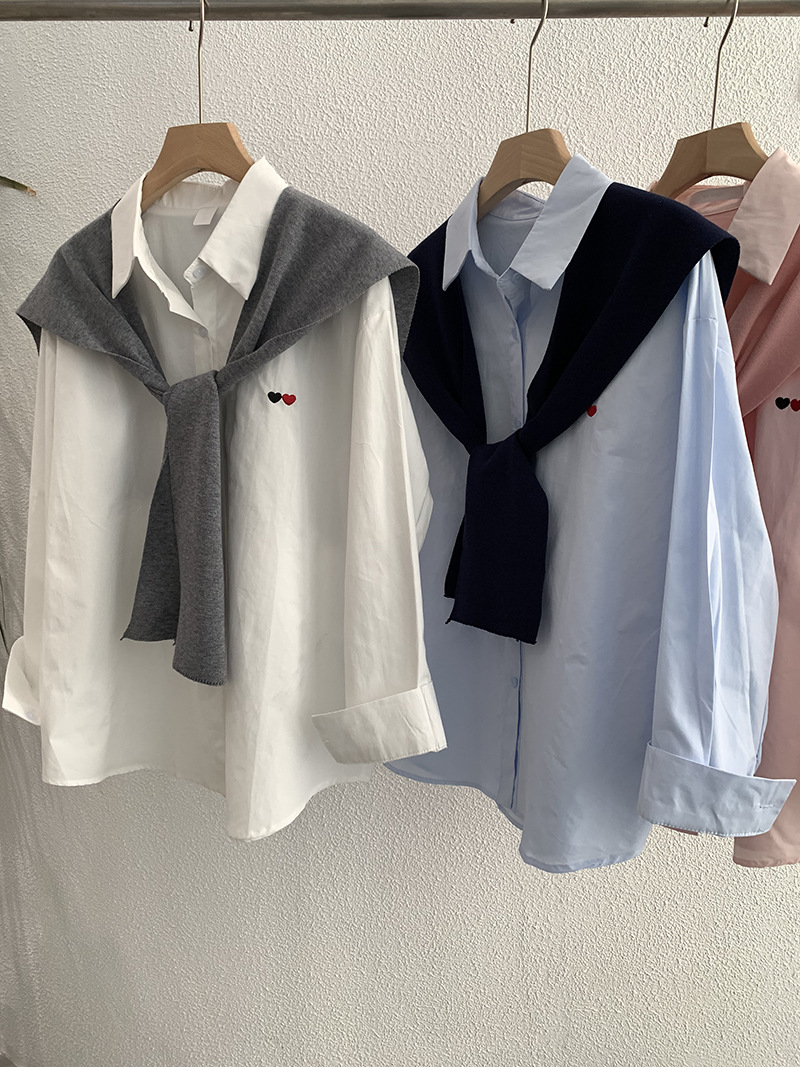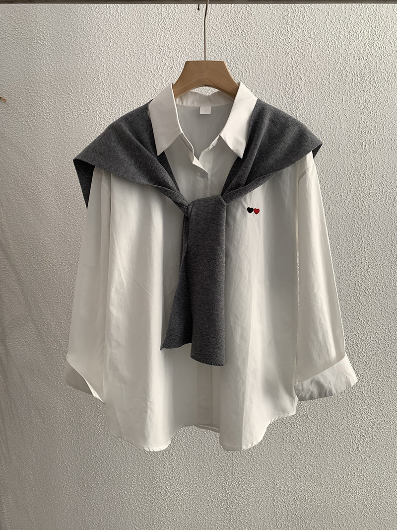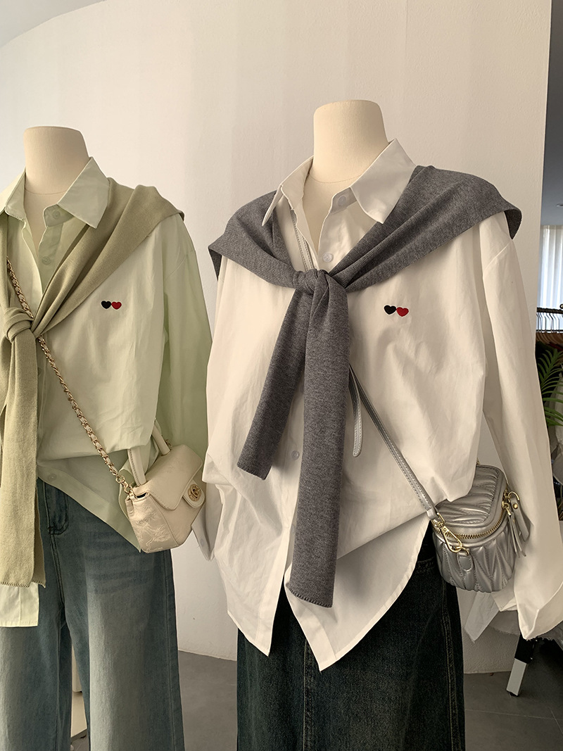 오우 마라이 사랑 자수 옷깃 긴 소매 셔츠 니트 목도리 2 피스 봄 여성 2205