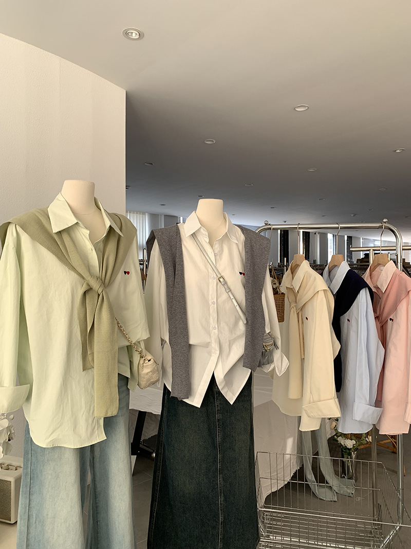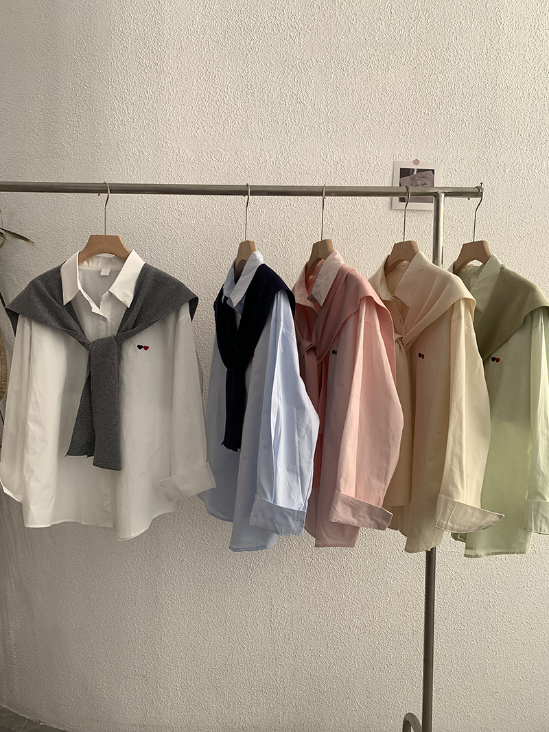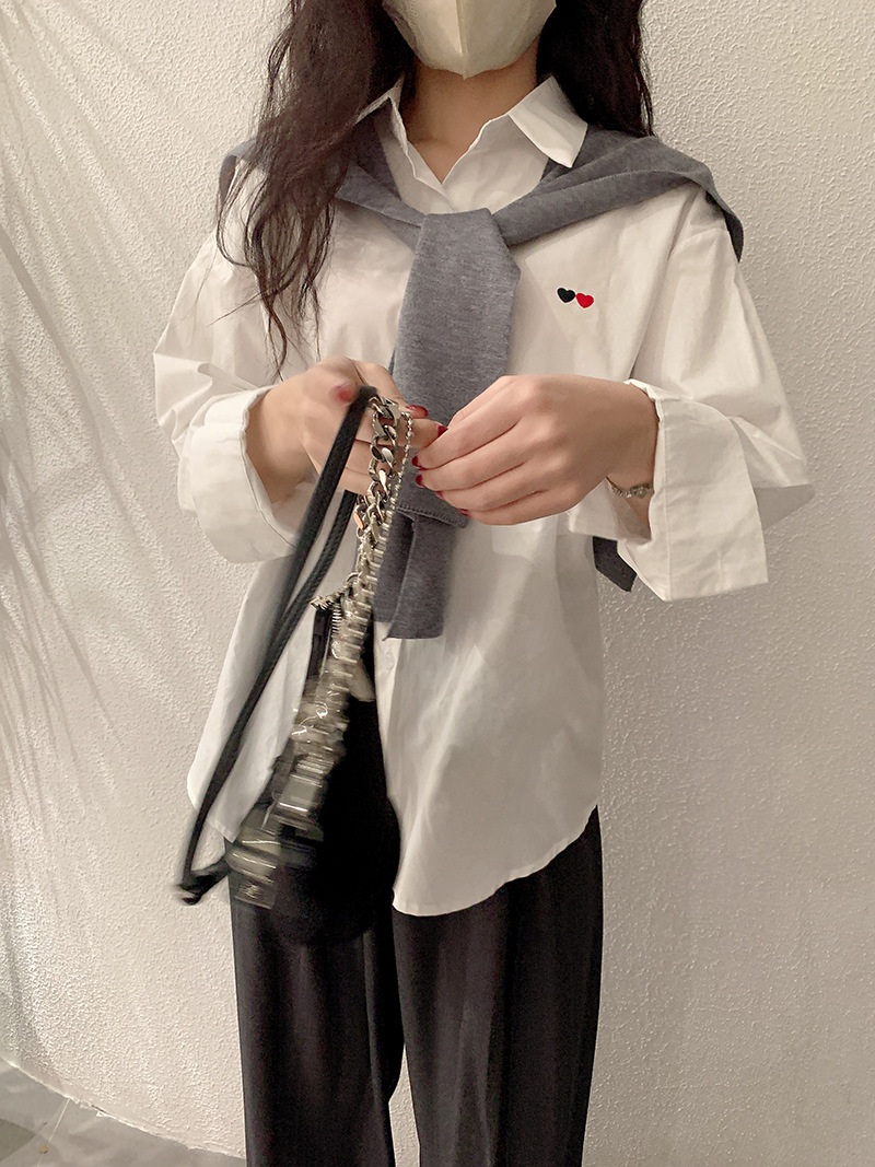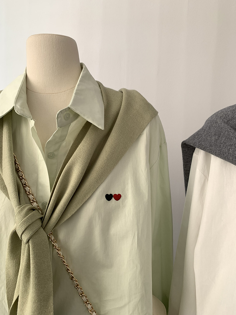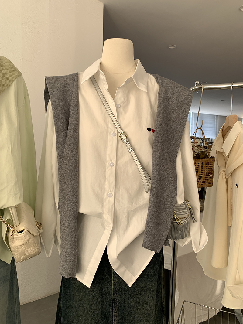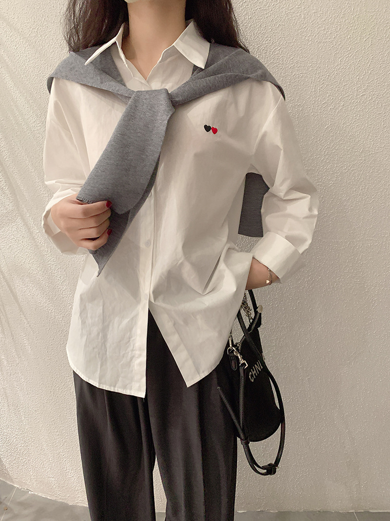 오우 마라이 사랑 자수 옷깃 긴 소매 셔츠 니트 목도리 2 피스 봄 여성 2205