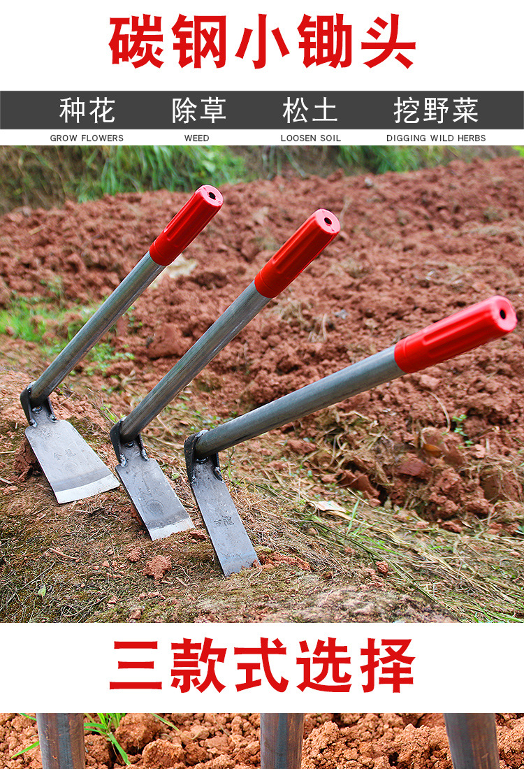 모든 강철 작은 괭이 가정용 야채 꽃 제초 유물 도구 곡괭이 작은 두꺼운 원예 회 망간 강철 괭이스토어 가기