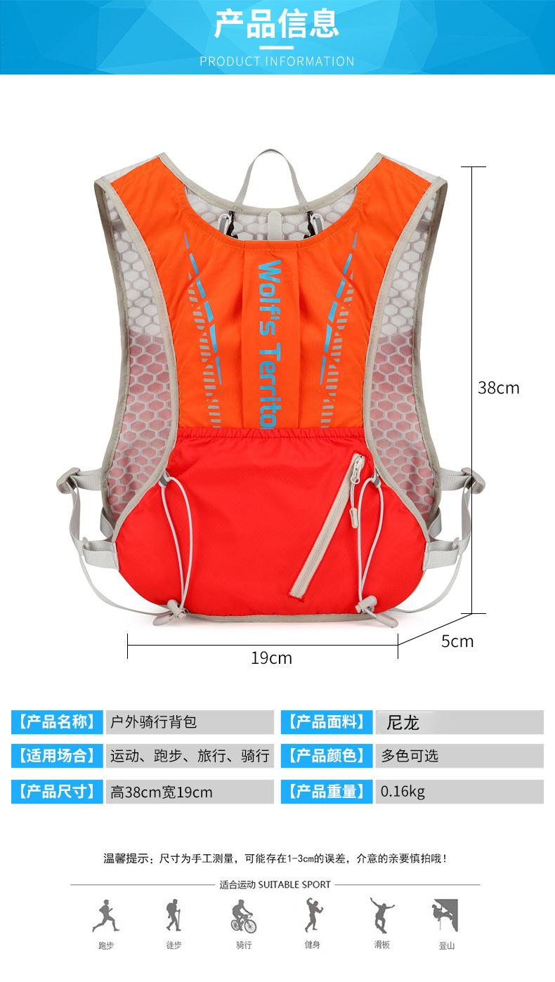 국경 간 5L 워터 백 달리기 조끼 남녀 야외 크로스 컨트리 라이딩 마라톤 배낭 경량 야외 가방