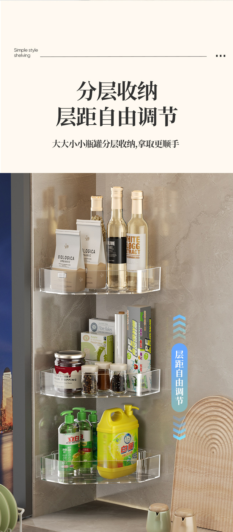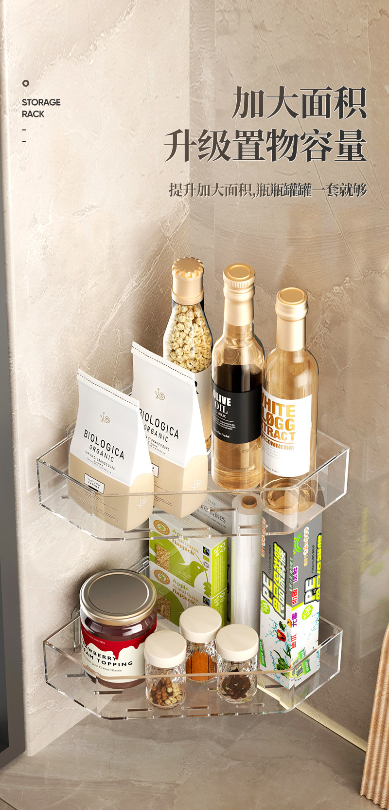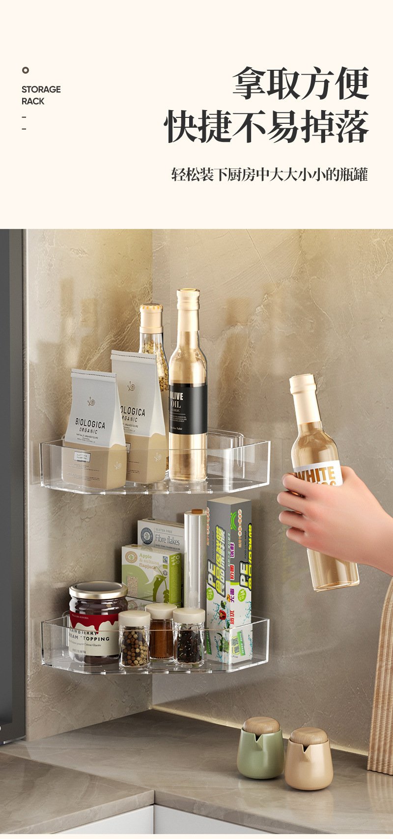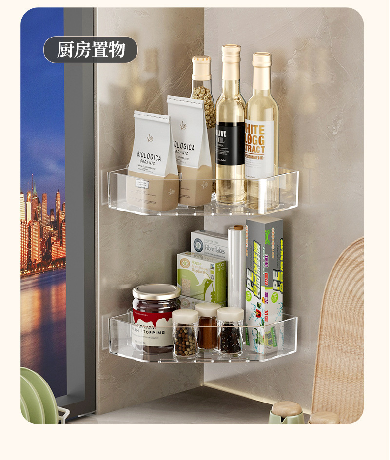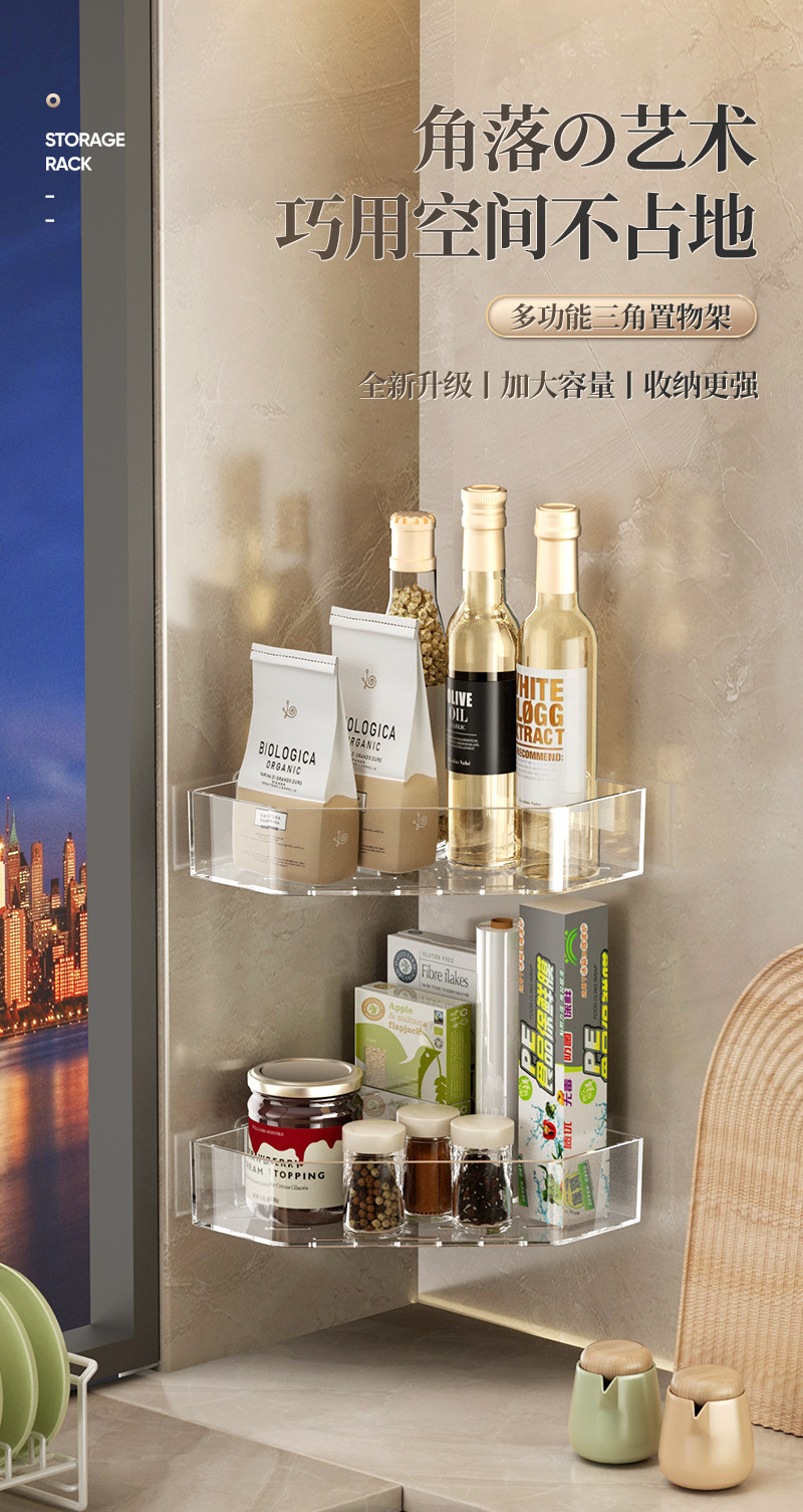 주방 삼각형 저장 랙 벽 매달려 다기능 비 펀치 양념 보관 스파이스 빈 멀티 레이어 간장 보관 랙