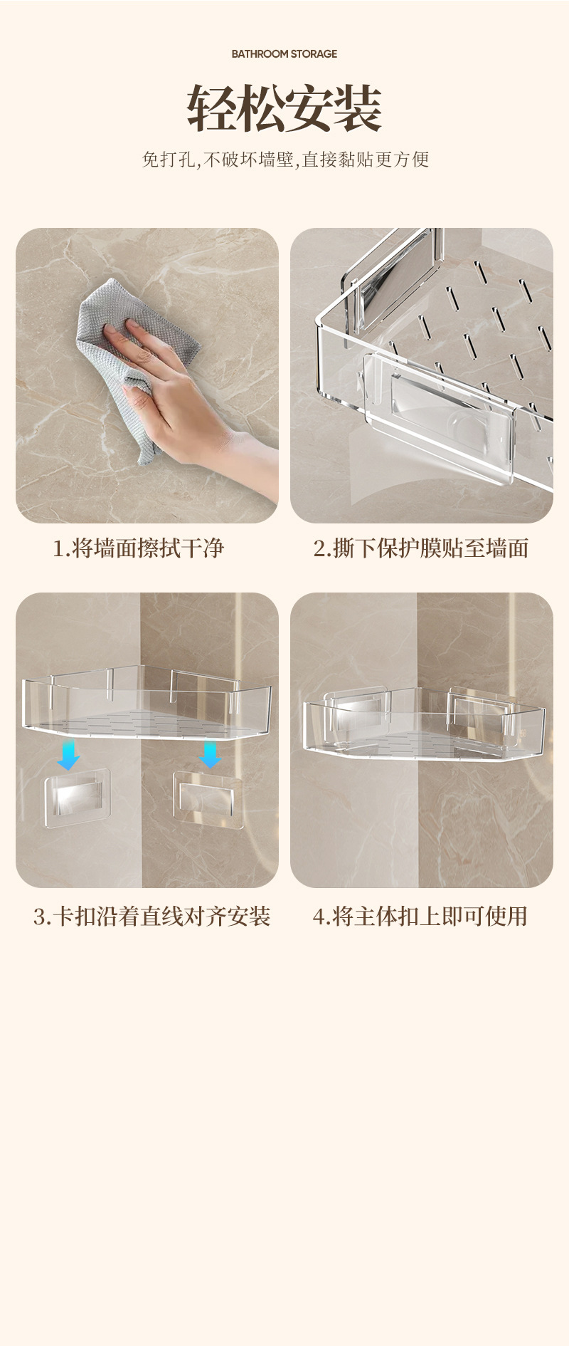 • 접착식 설치 [투명삼각형 수납선반] 4개