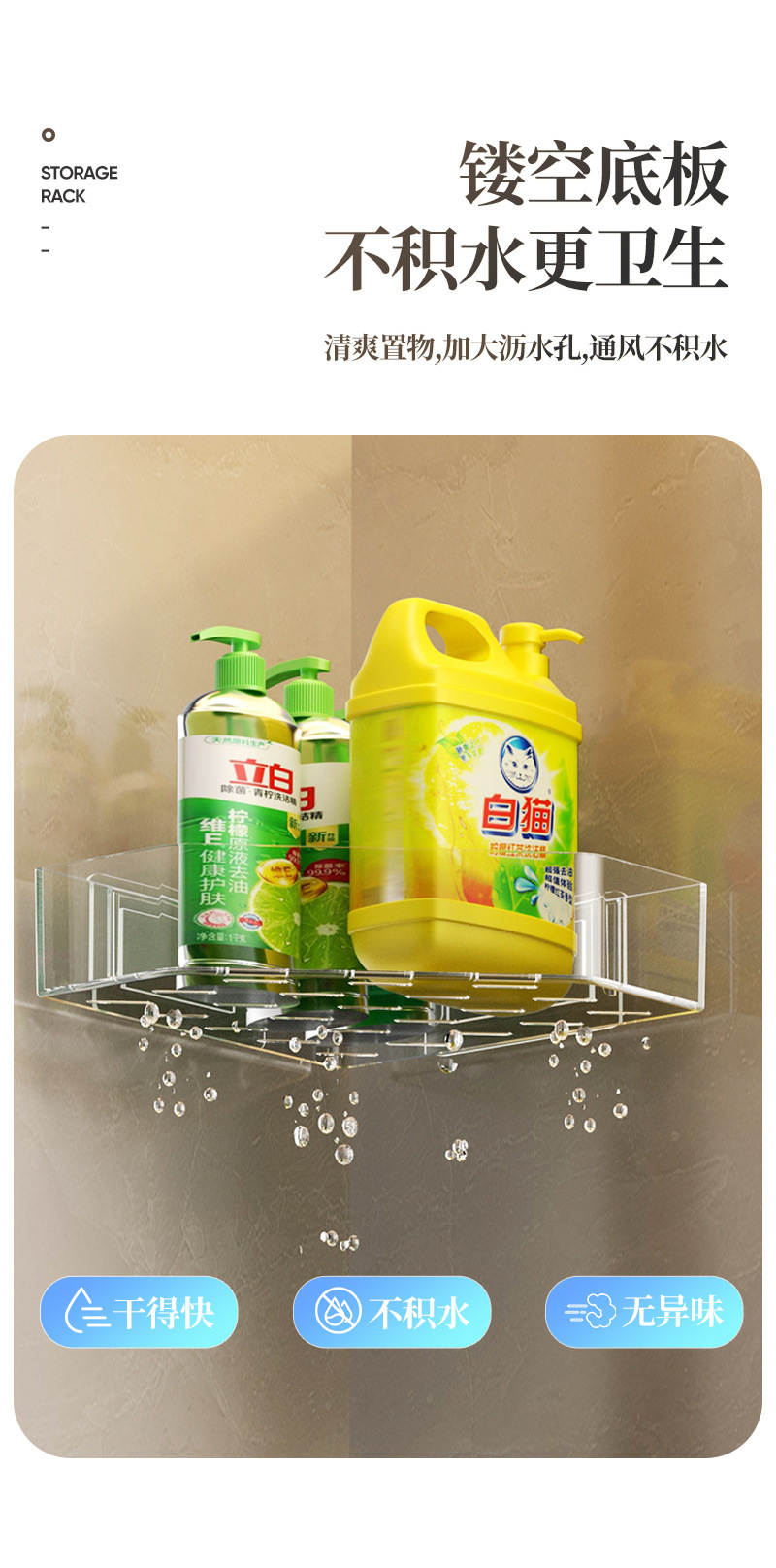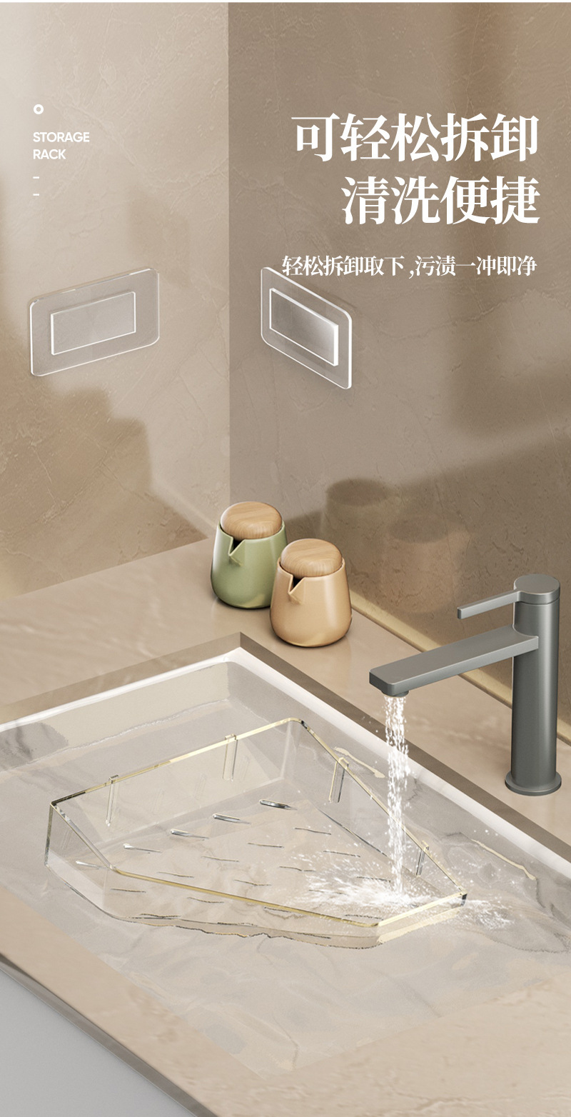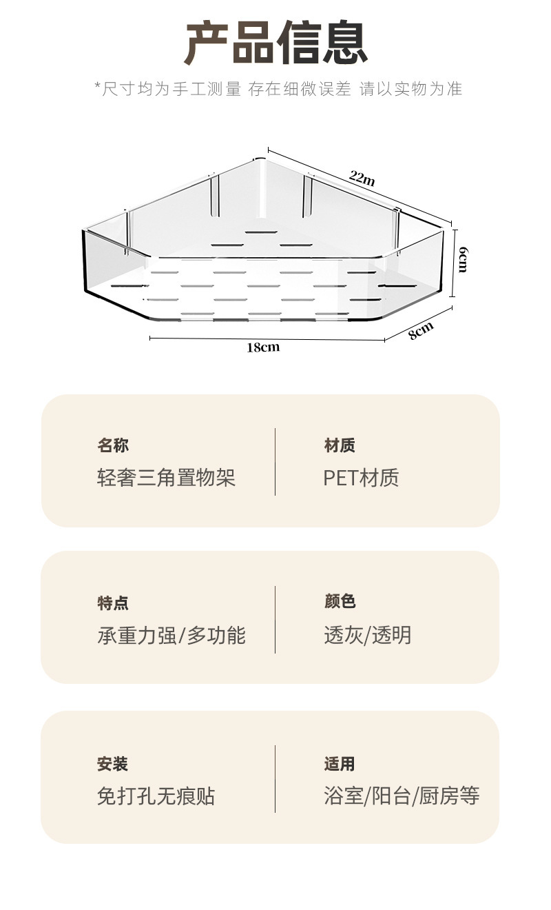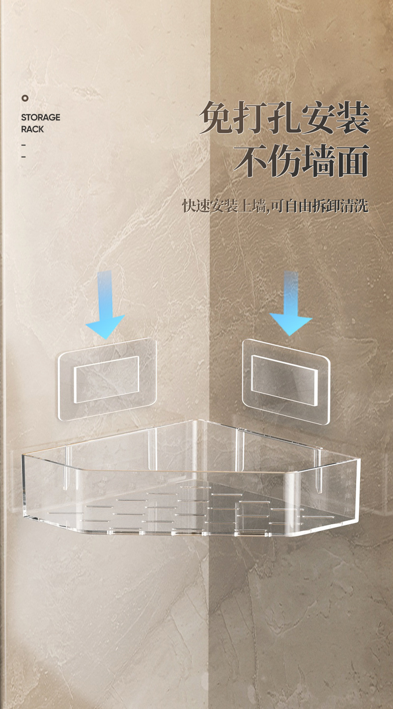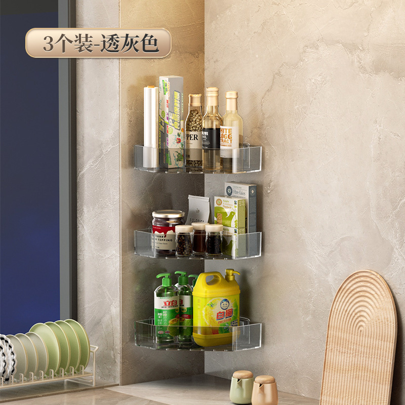 • 접착식 설치 [투명 회색 삼각 수납선반] 1개