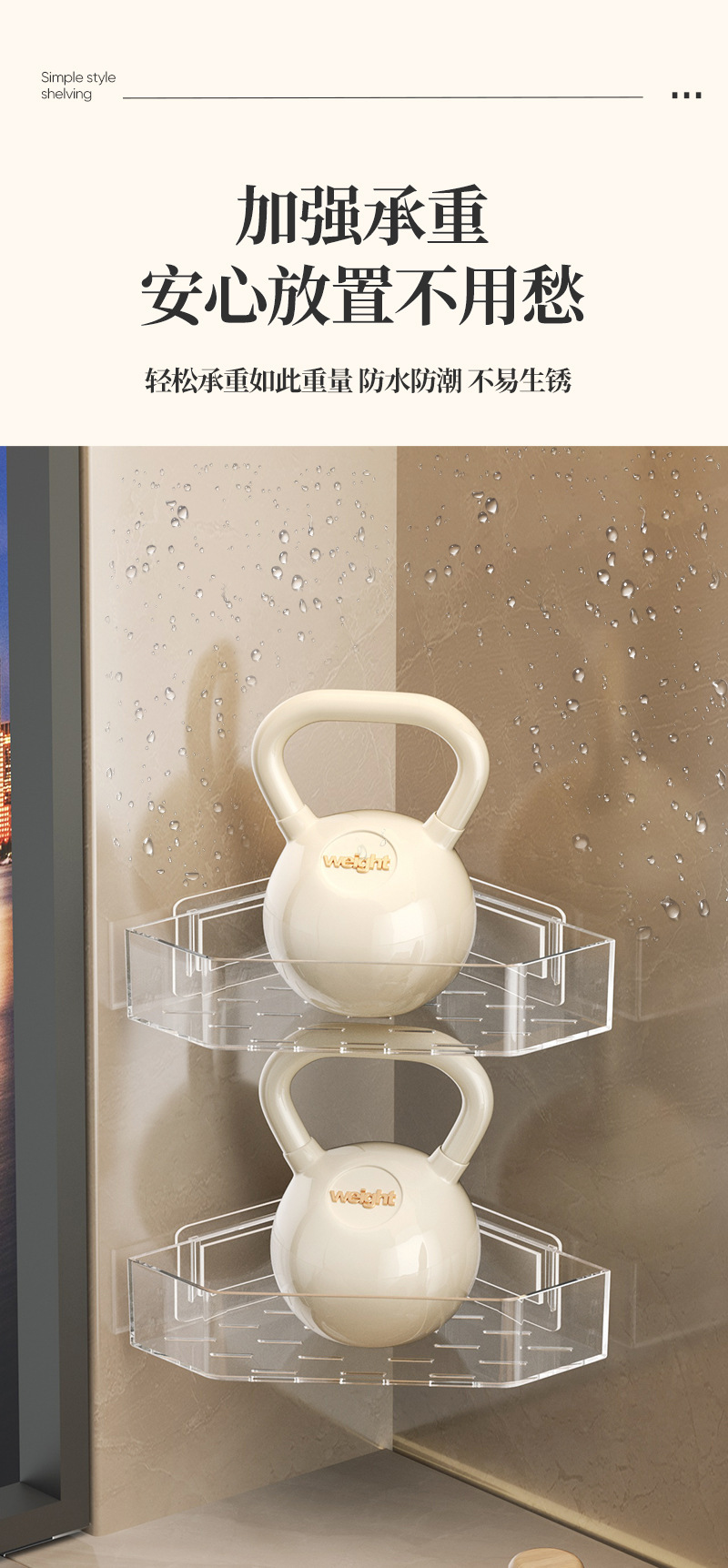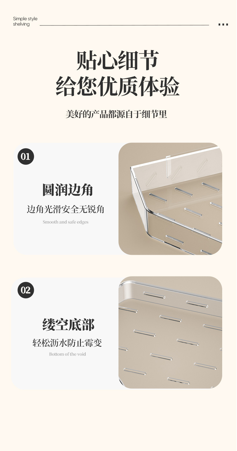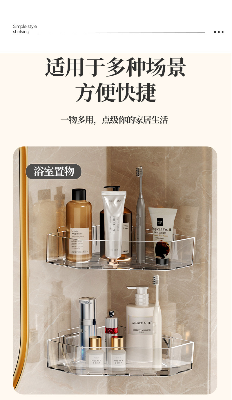 • 접착식 설치 [투명 회색 삼각 수납선반] 2개