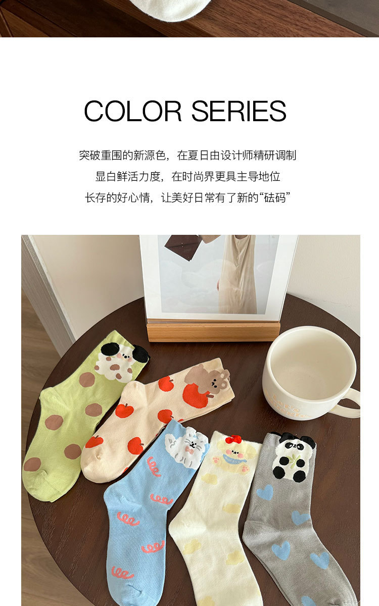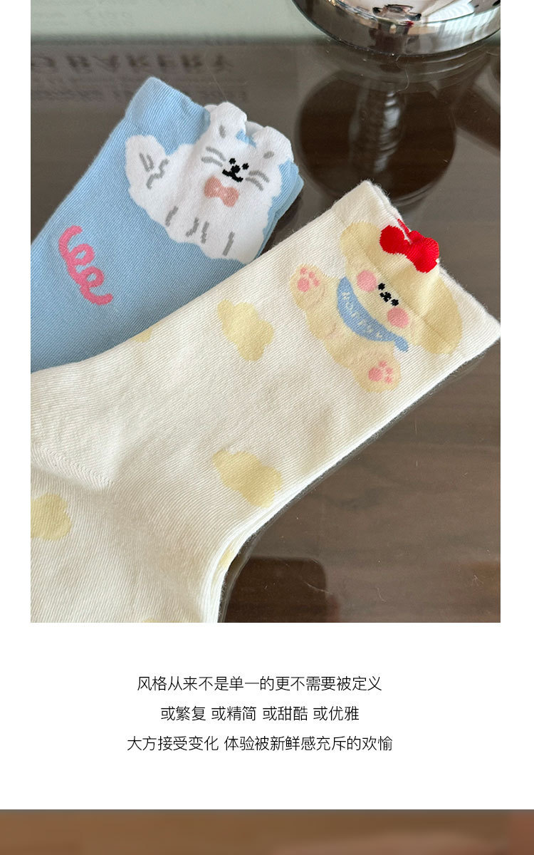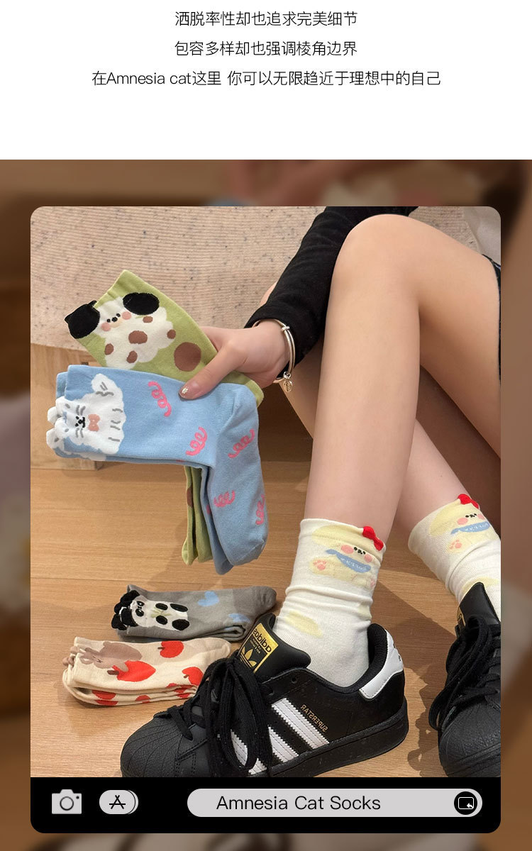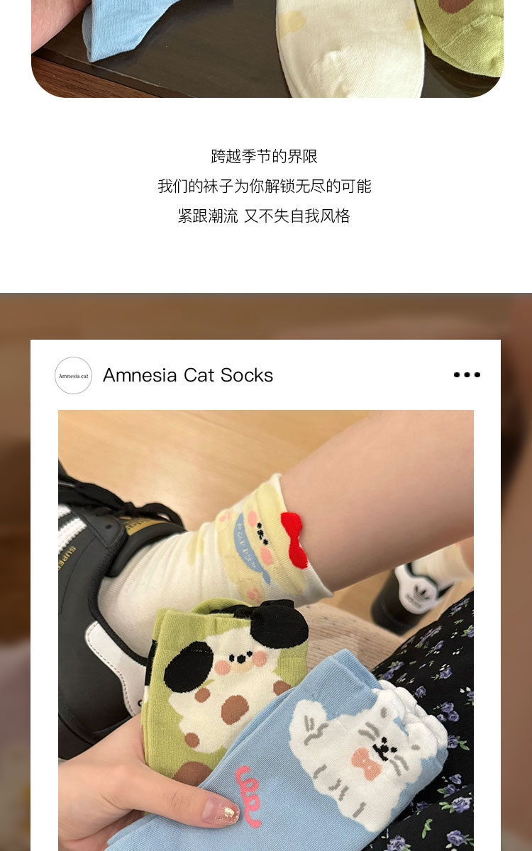 재미있는 만화 강아지 양말 여성용 봄 가을 블루 중간 길이 양말 순면 일본 스타일 귀여운 학생용 긴 양말 가을용 프리사이즈스토어 가기
