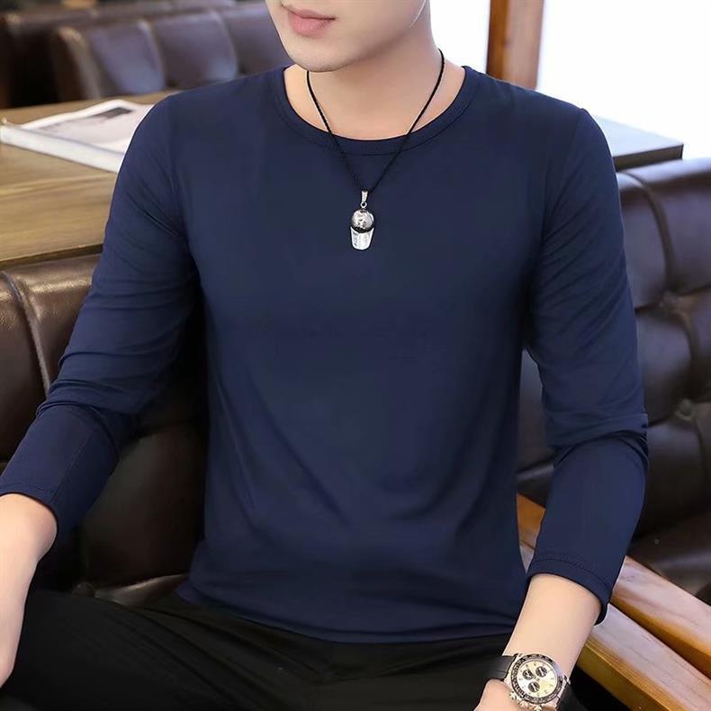 공장 직접 2025 봄과 가을 남성 긴팔 티셔츠 슬림 간단한 단색 둥근 목 옷베이스 셔츠 긴 T