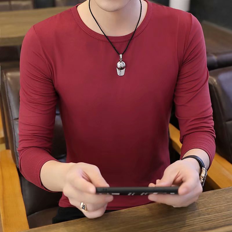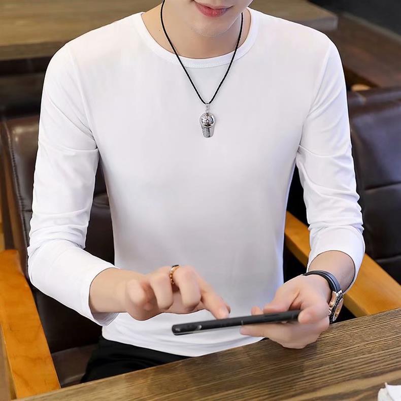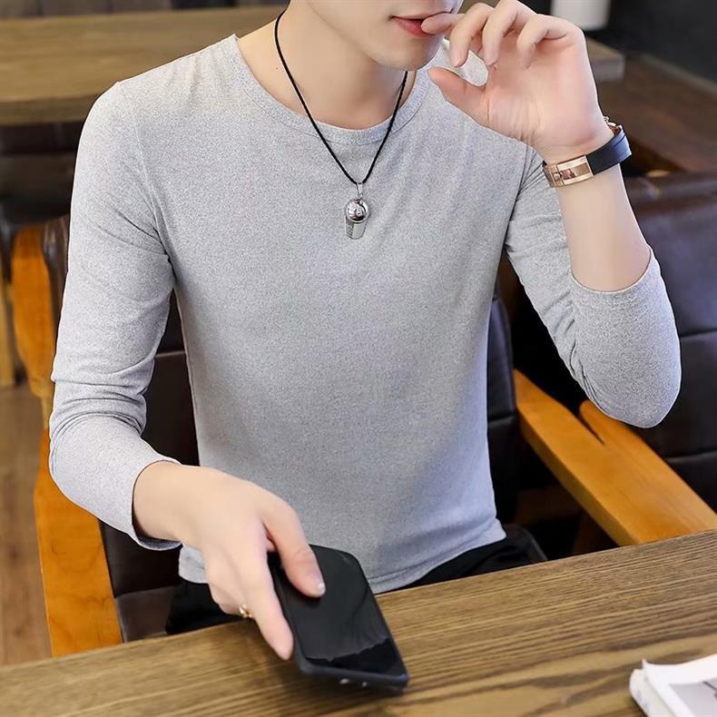 공장 직접 2025 봄과 가을 남성 긴팔 티셔츠 슬림 간단한 단색 둥근 목 옷베이스 셔츠 긴 T스토어 가기