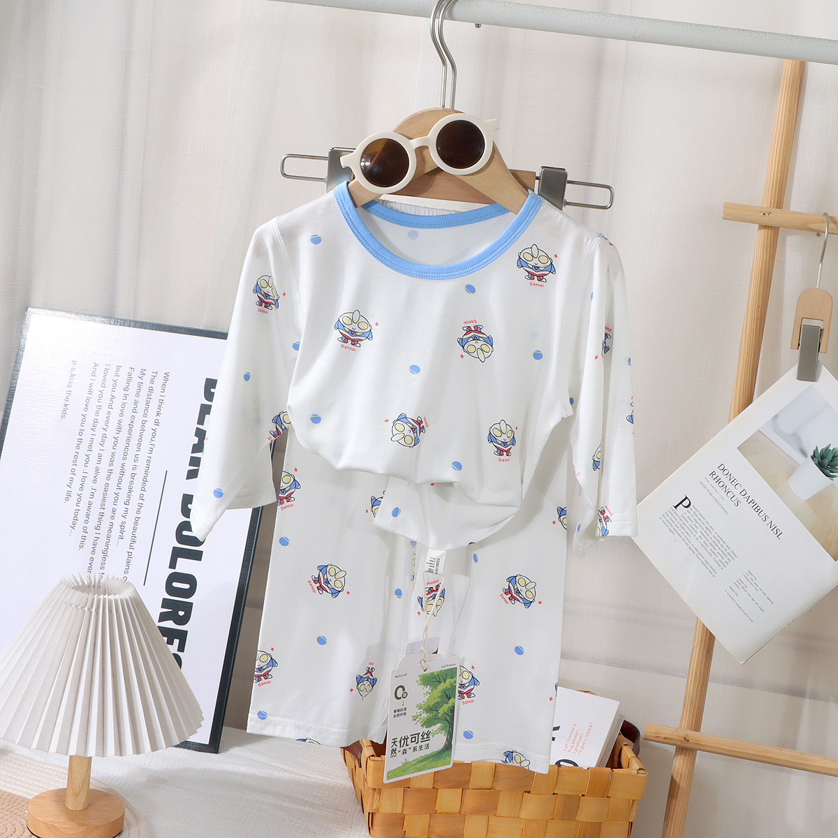 아동용 A급 여름 가정복, 남아용 긴팔 에어컨 의류, 여아용 모달 잠옷, 아기옷, 귀여운스토어 가기