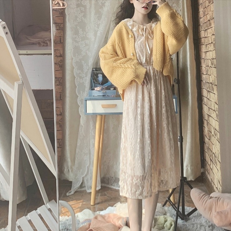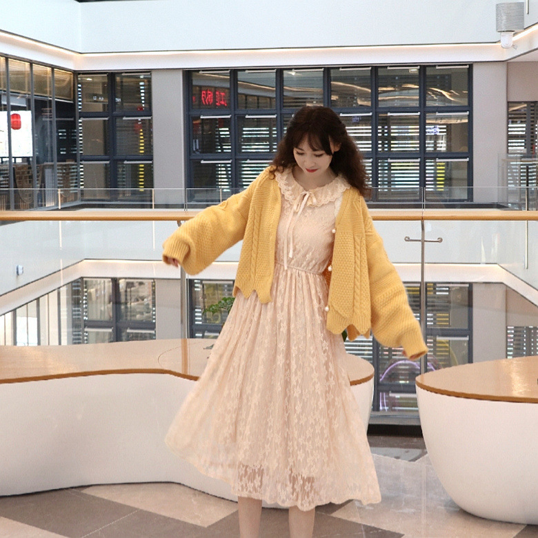 원피스/세트 가을 · 겨울 새 슈퍼 페어리 느슨한 한국 스웨터 재킷 원피스 투피스 세트 여학생스토어 가기