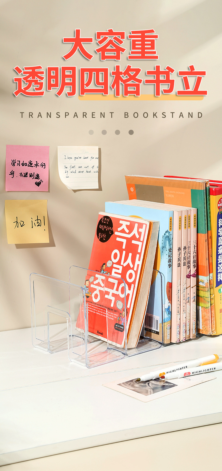 데스크탑 4 그리드 북 엔드 스토리지 랙 독서 랙 테이블 책장 데스크탑 고정 투명 책 스토리지 브래킷