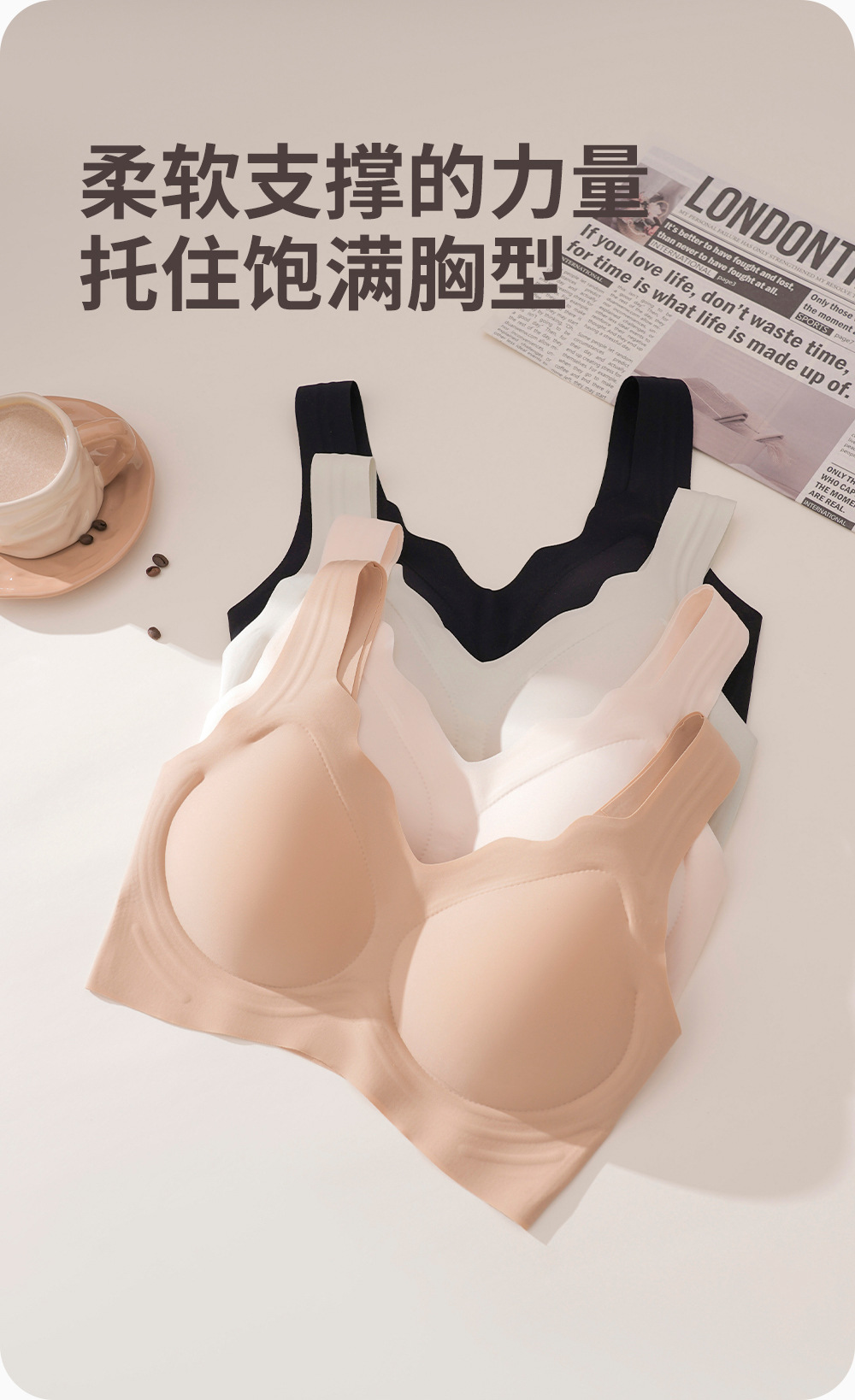액체 재단 원활한 보이지 않는 속옷 여성 젤리 소프트 지원 처짐 방지 통합 고정 컵 아름다운 등 브래지어 불투과성스토어 가기