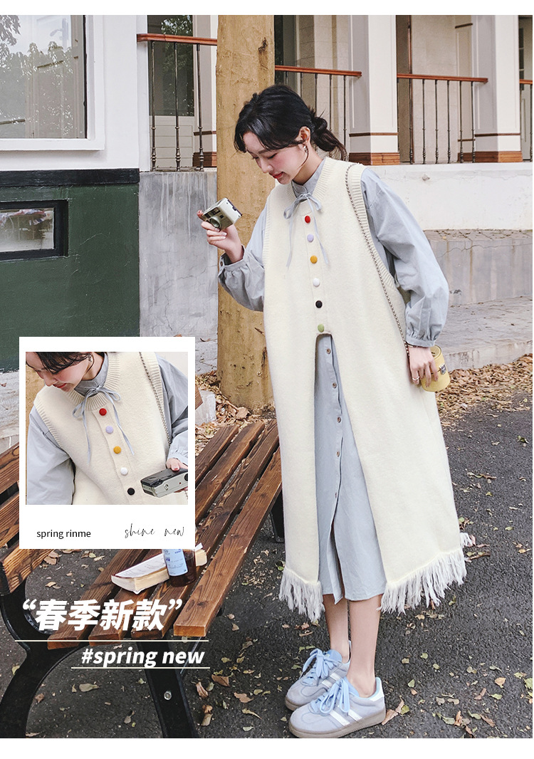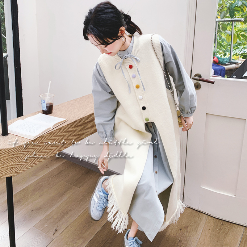 Nifty Girly 세트 여자 2025 봄 새 셔츠 원피스 컬러 버튼 술 니트 탱크 원피스 투피스 세트스토어 가기