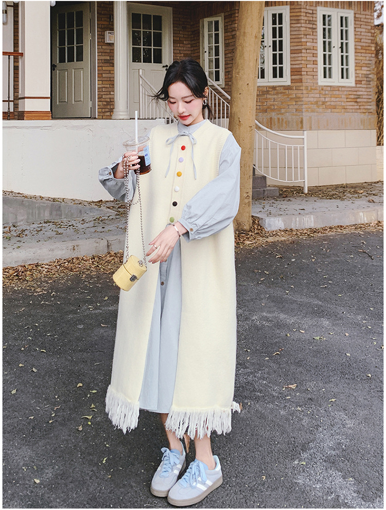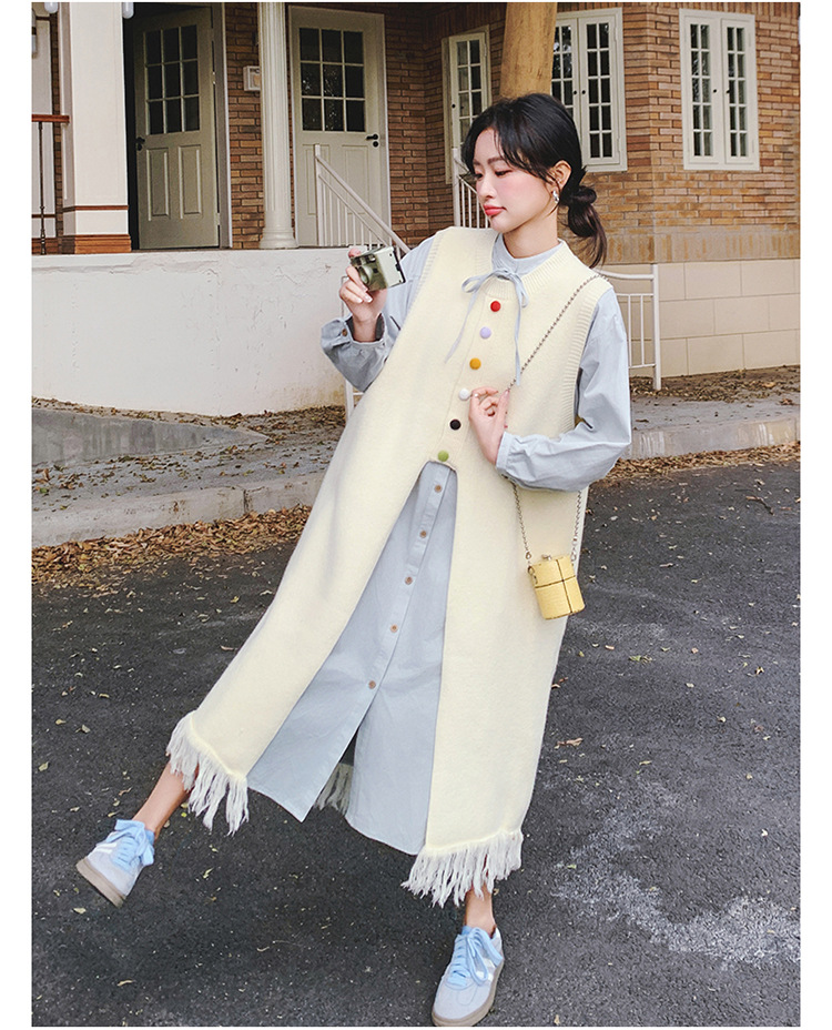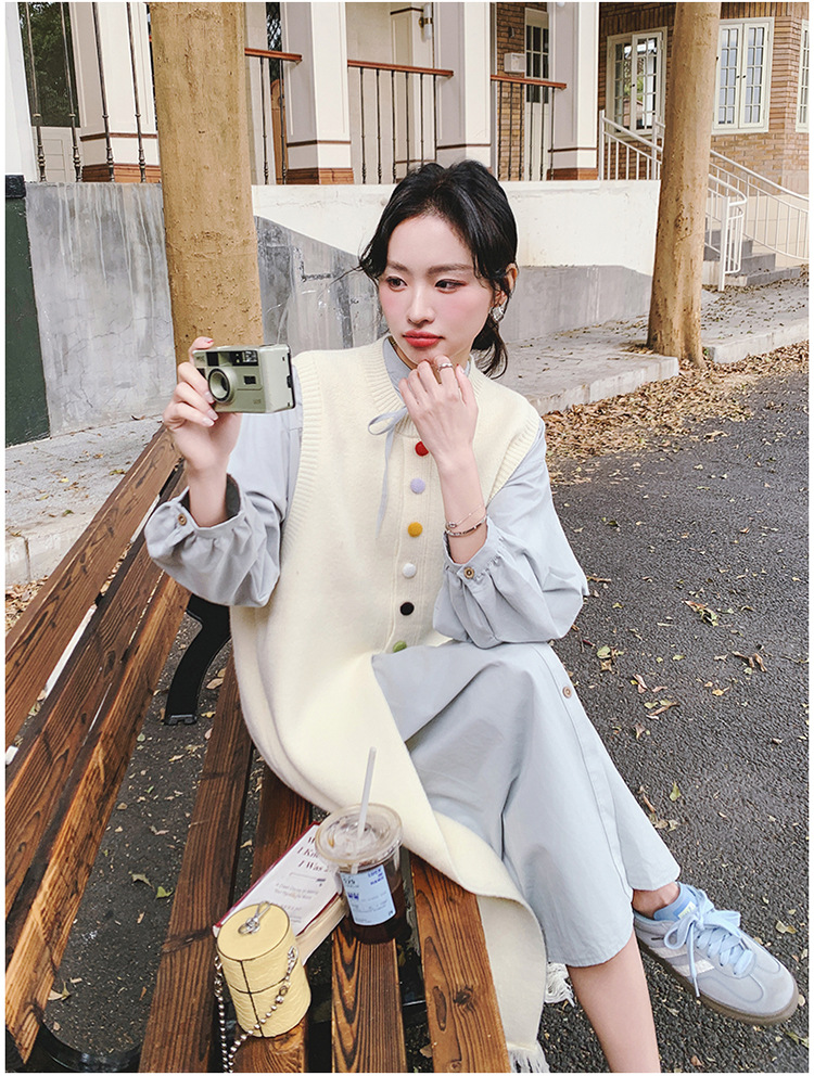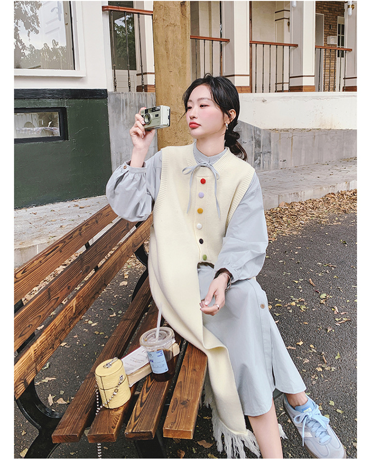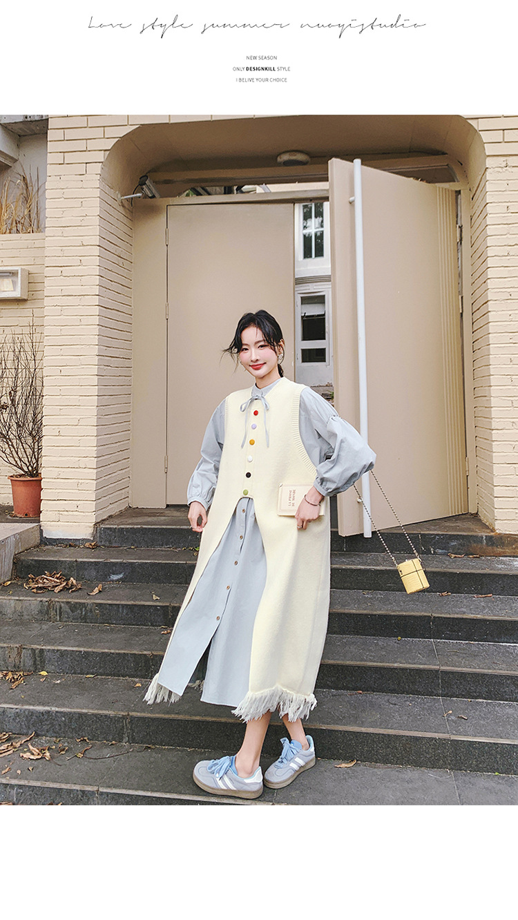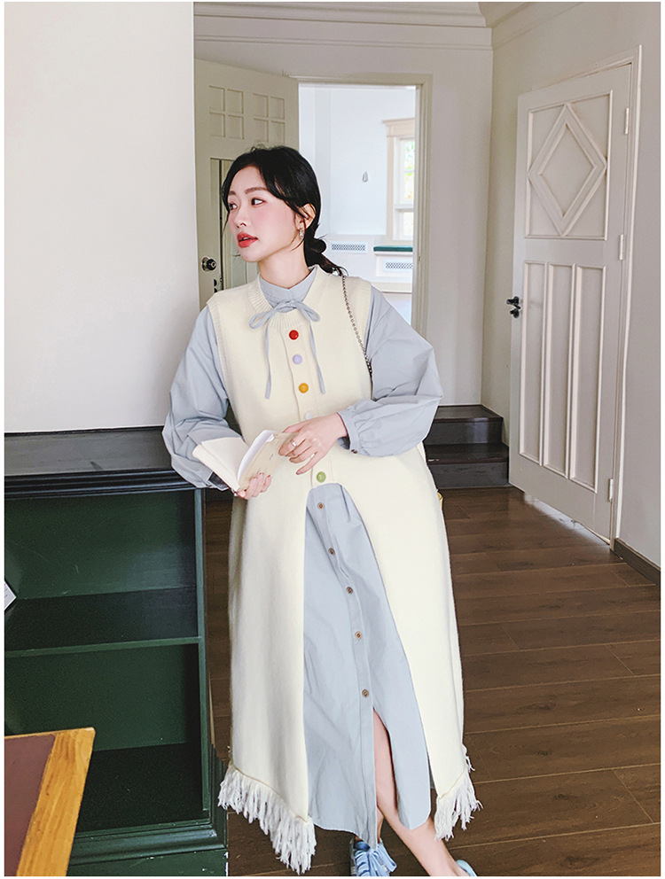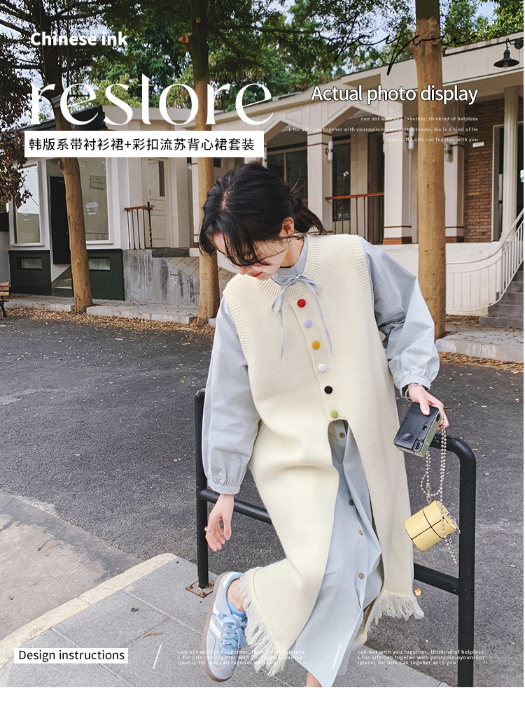 Nifty Girly 세트 여자 2025 봄 새 셔츠 원피스 컬러 버튼 술 니트 탱크 원피스 투피스 세트
