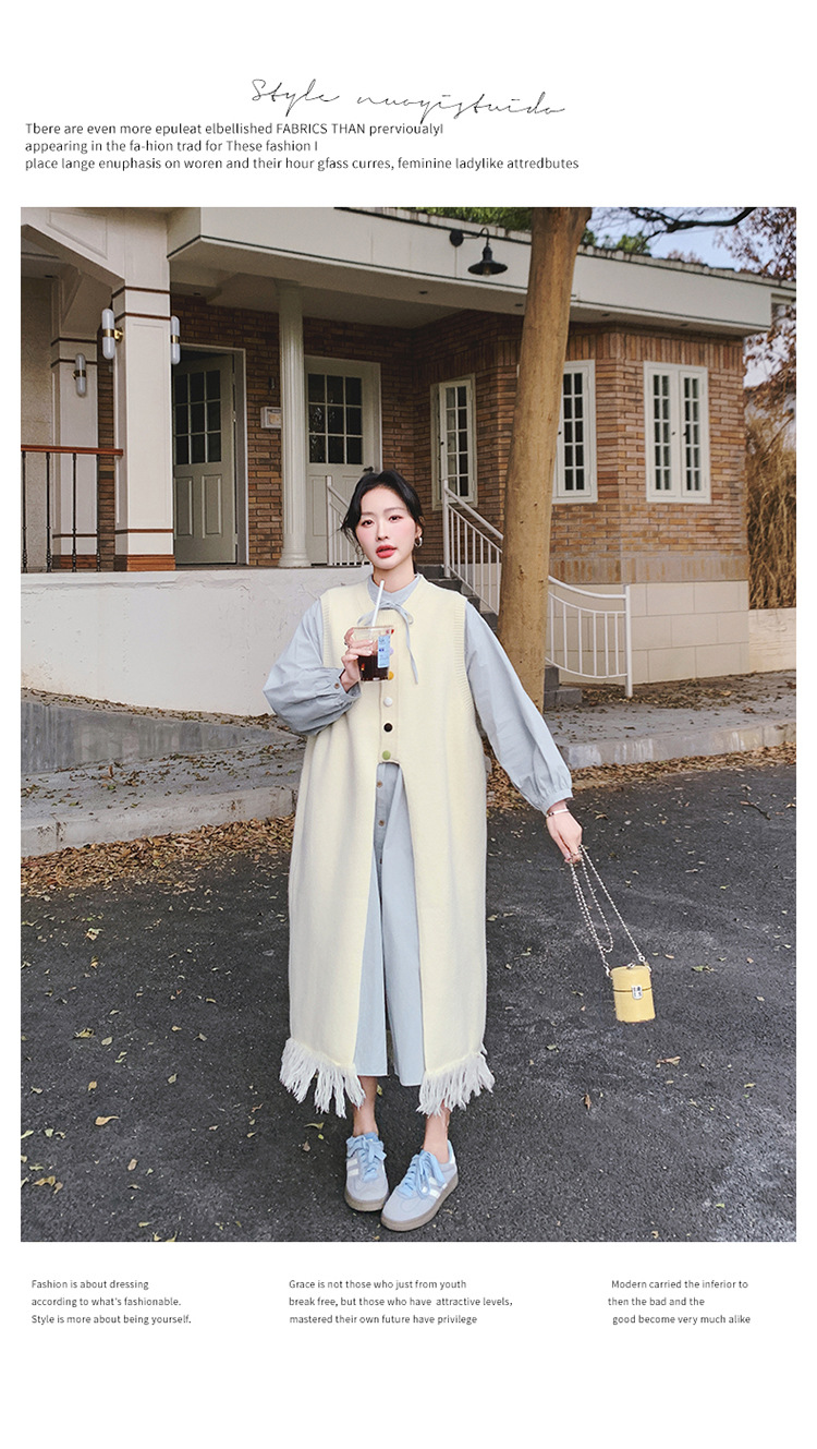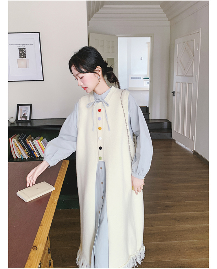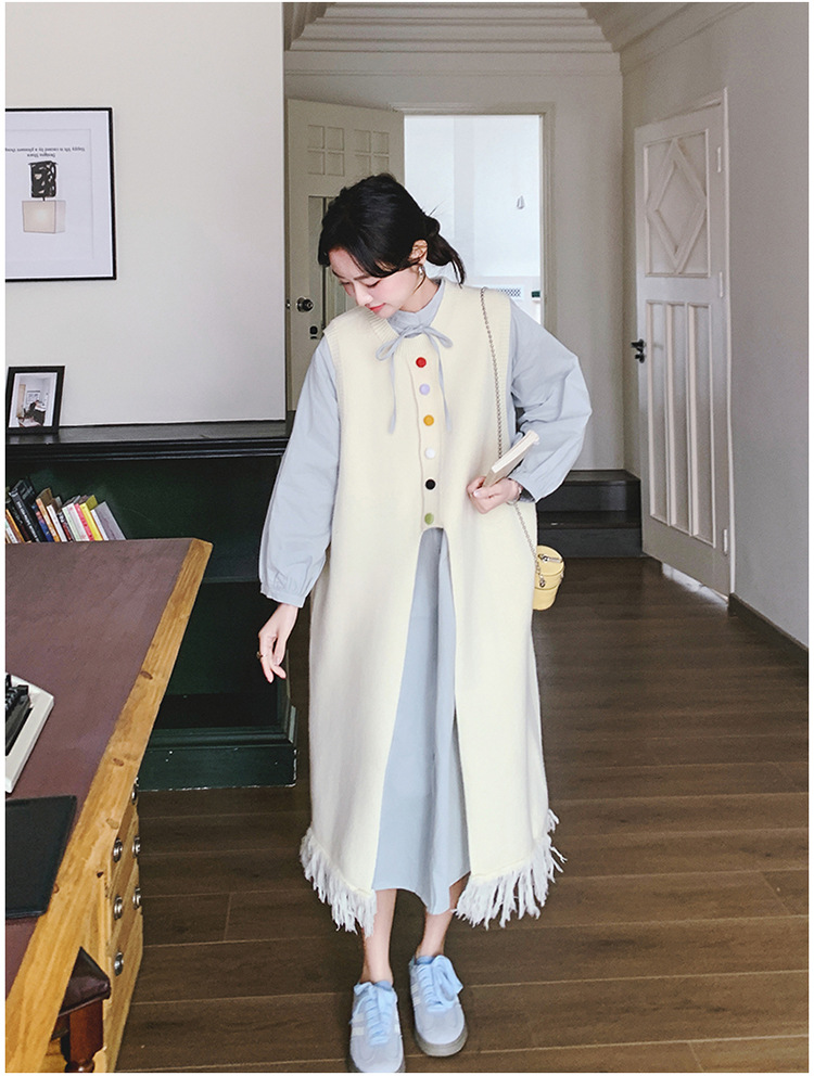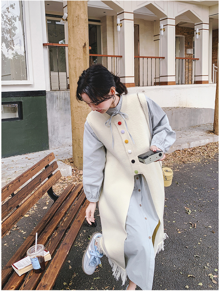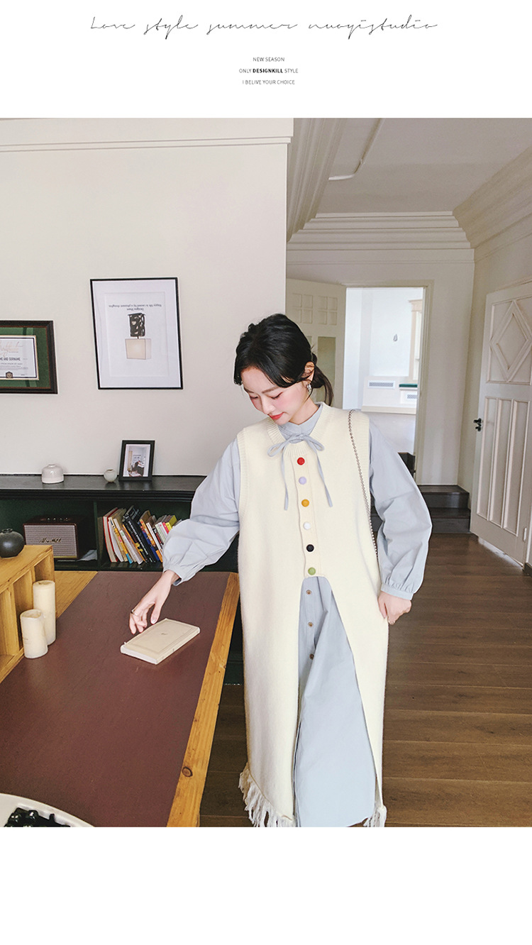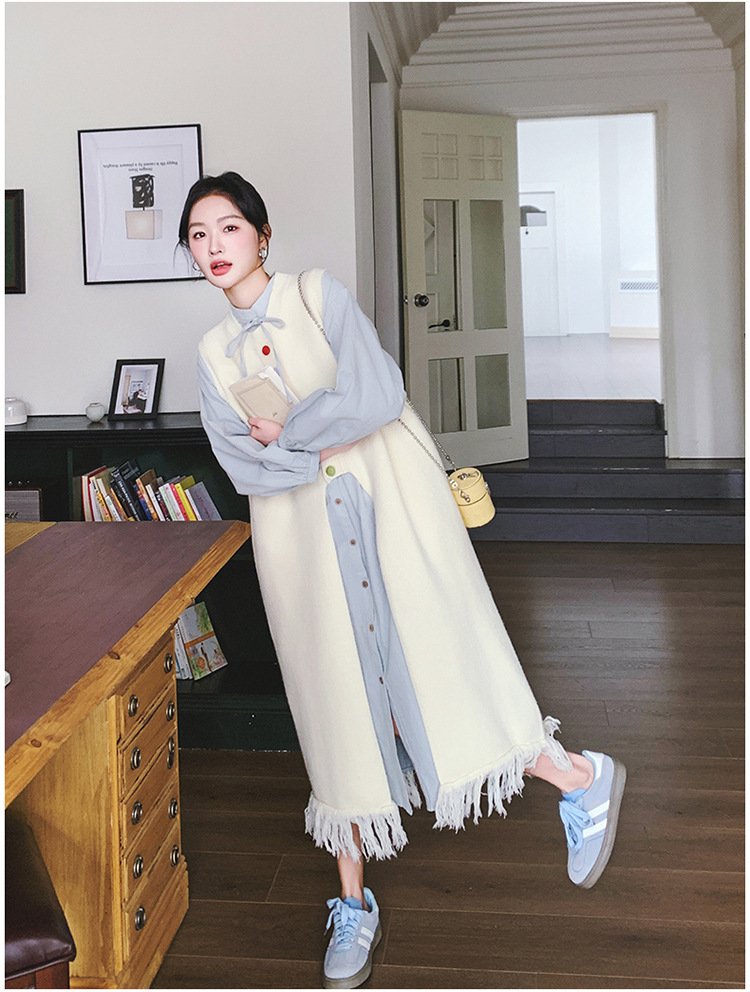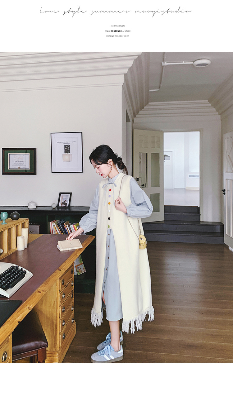 Nifty Girly 세트 여자 2025 봄 새 셔츠 원피스 컬러 버튼 술 니트 탱크 원피스 투피스 세트