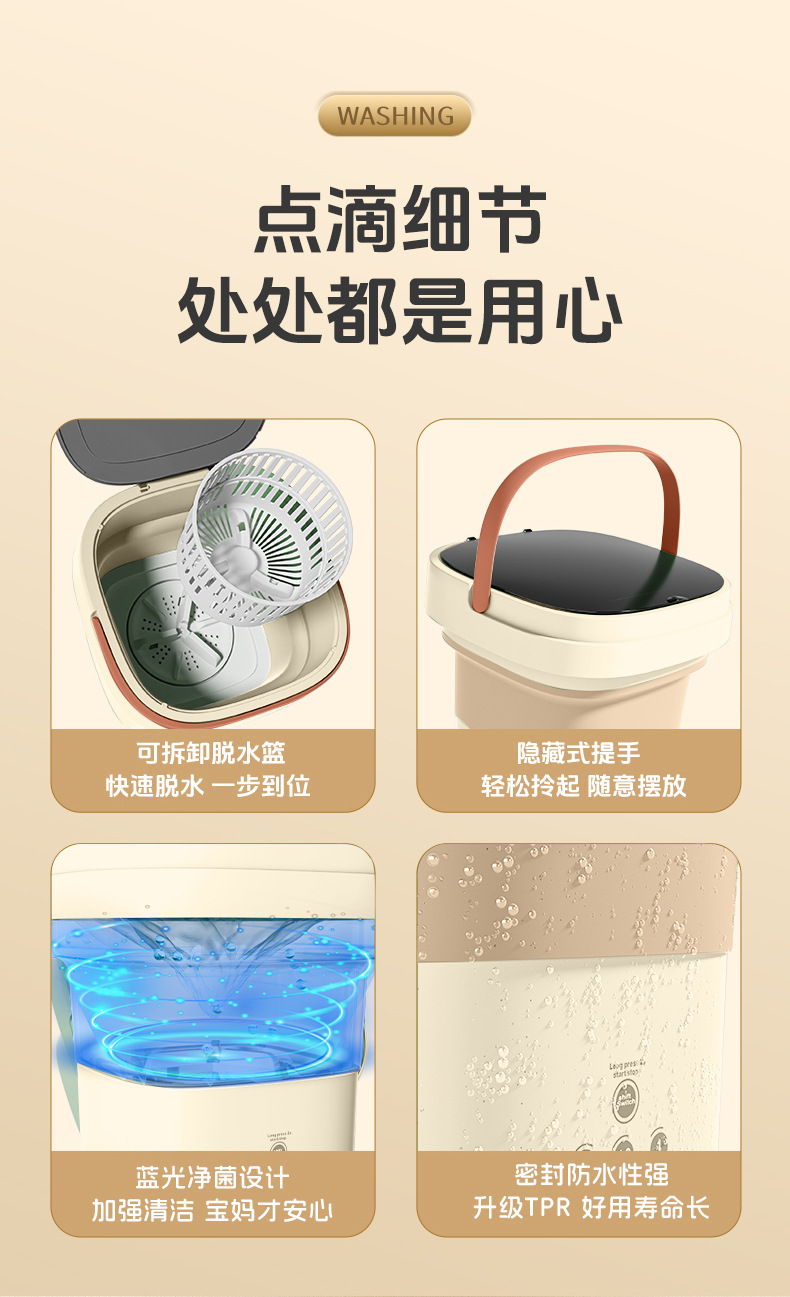 세탁과 탈수를 통합한 자동 접이식 세탁기, 가정용 소형 아기 전용 속옷, 양말 세탁기, 엄마와 아기에게 적합