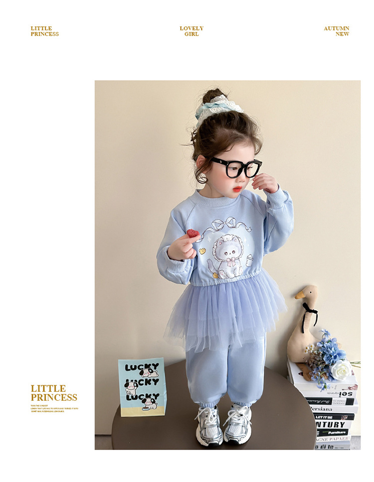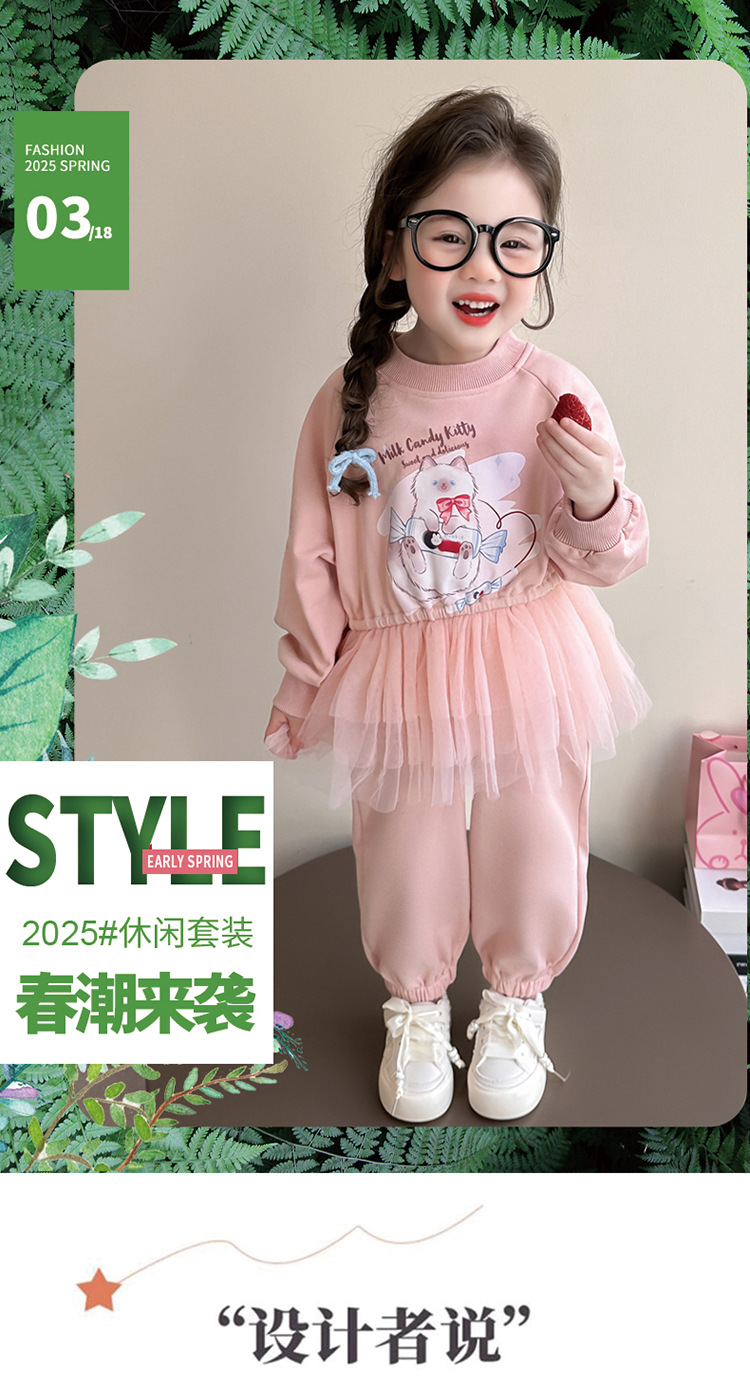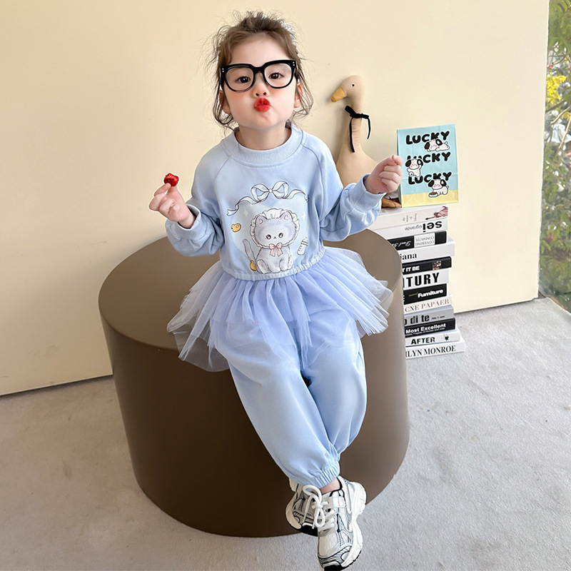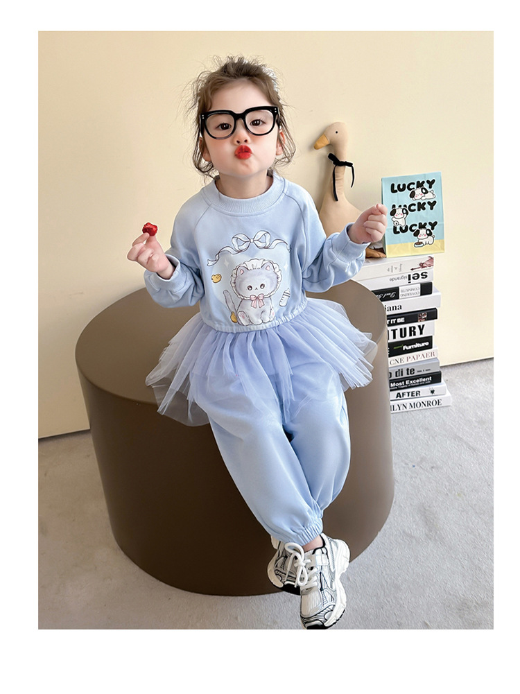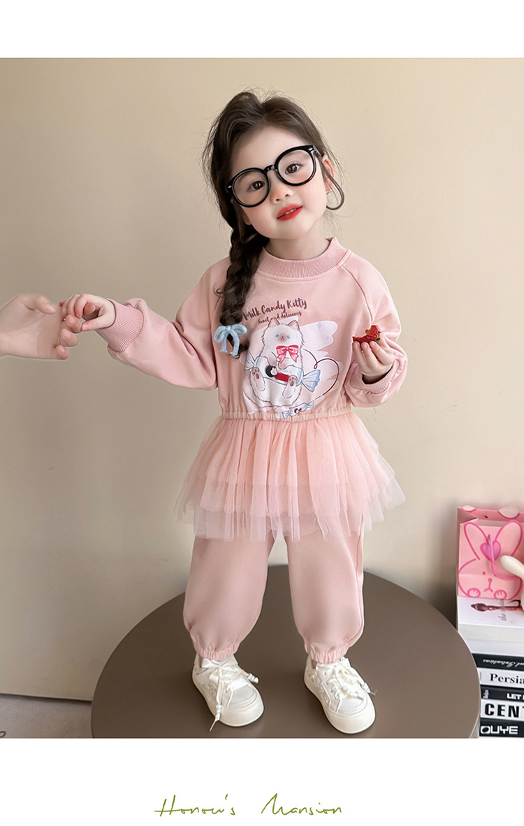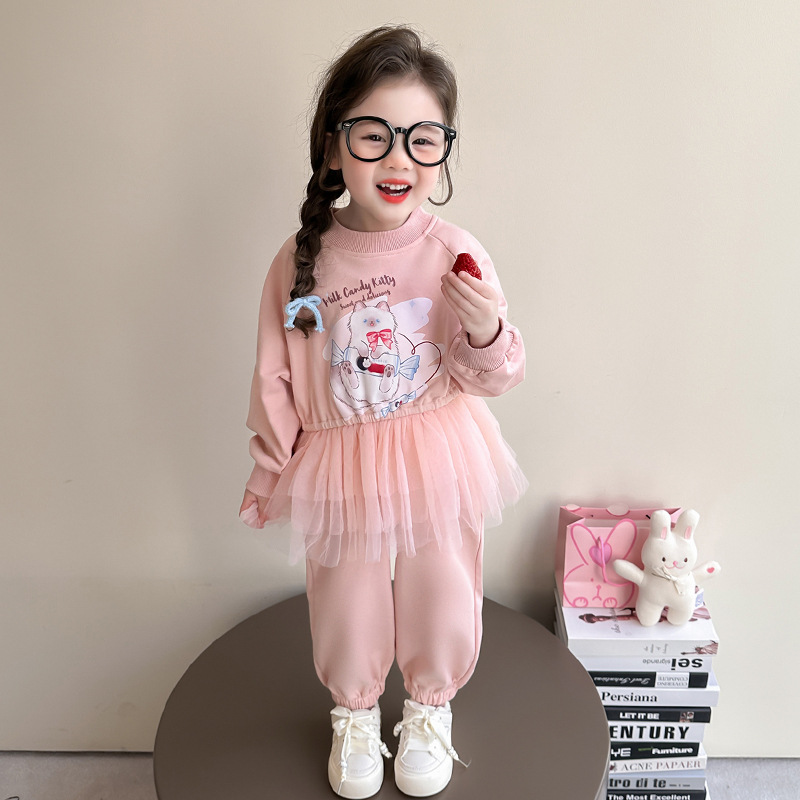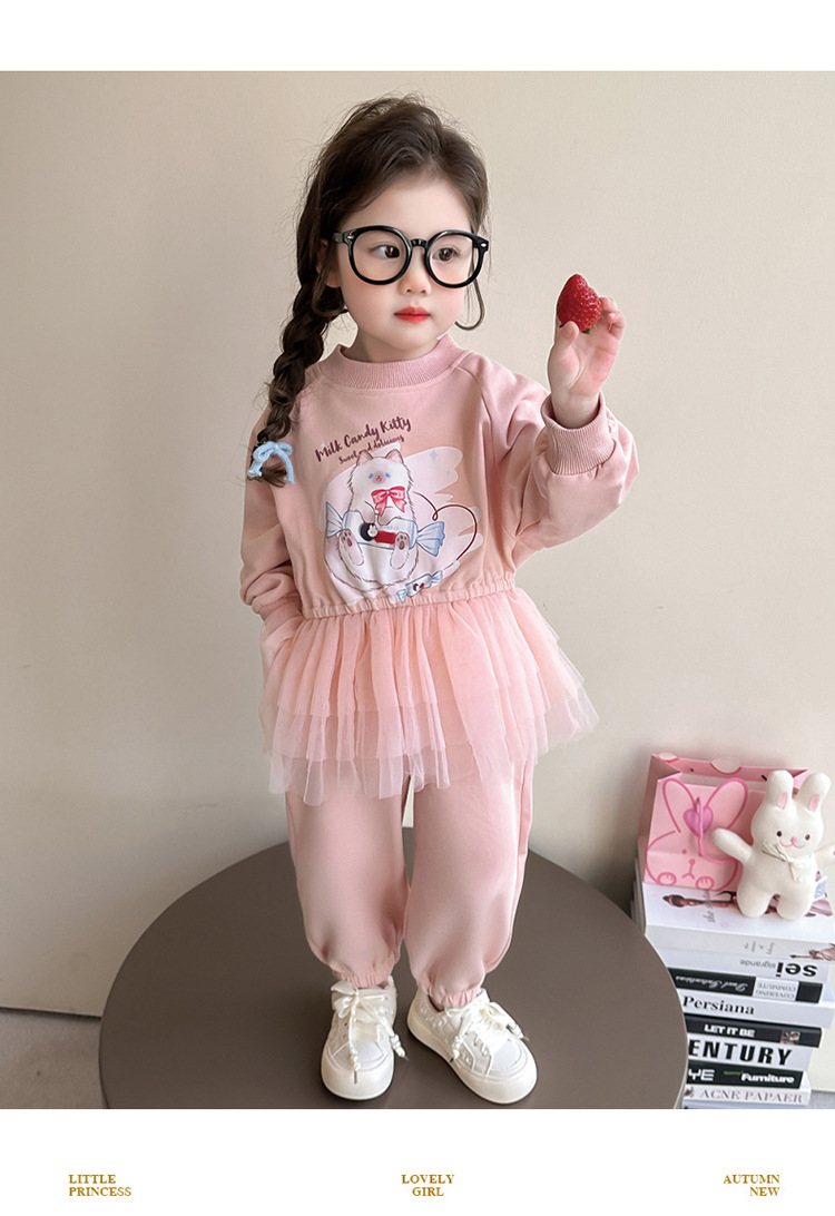 소녀의 고양이 메쉬 공주 세트 2025 봄과 가을 새 소녀의 유행 두 조각 어린이 옷스토어 가기