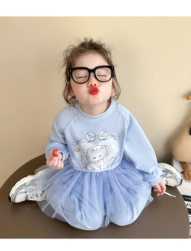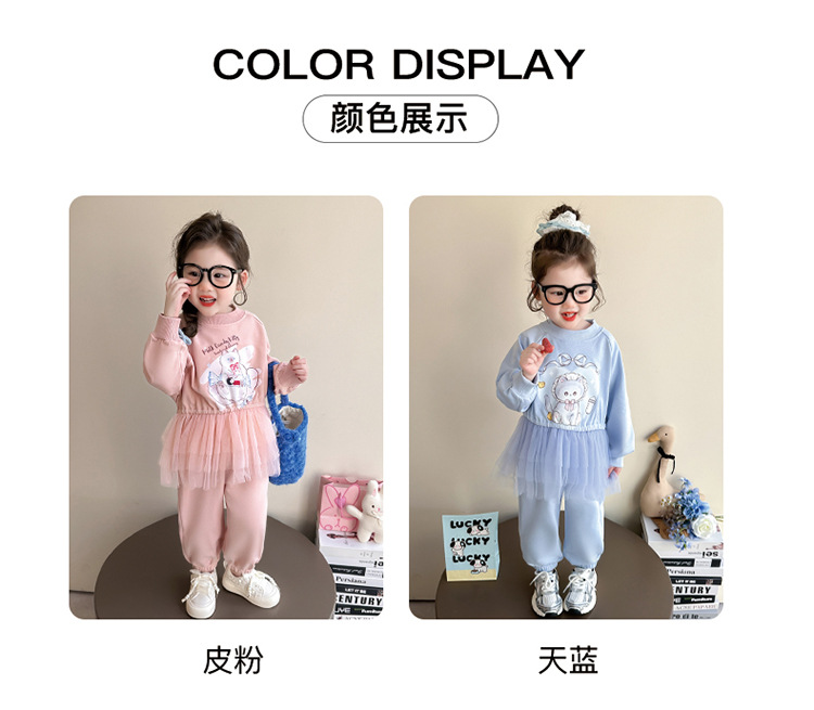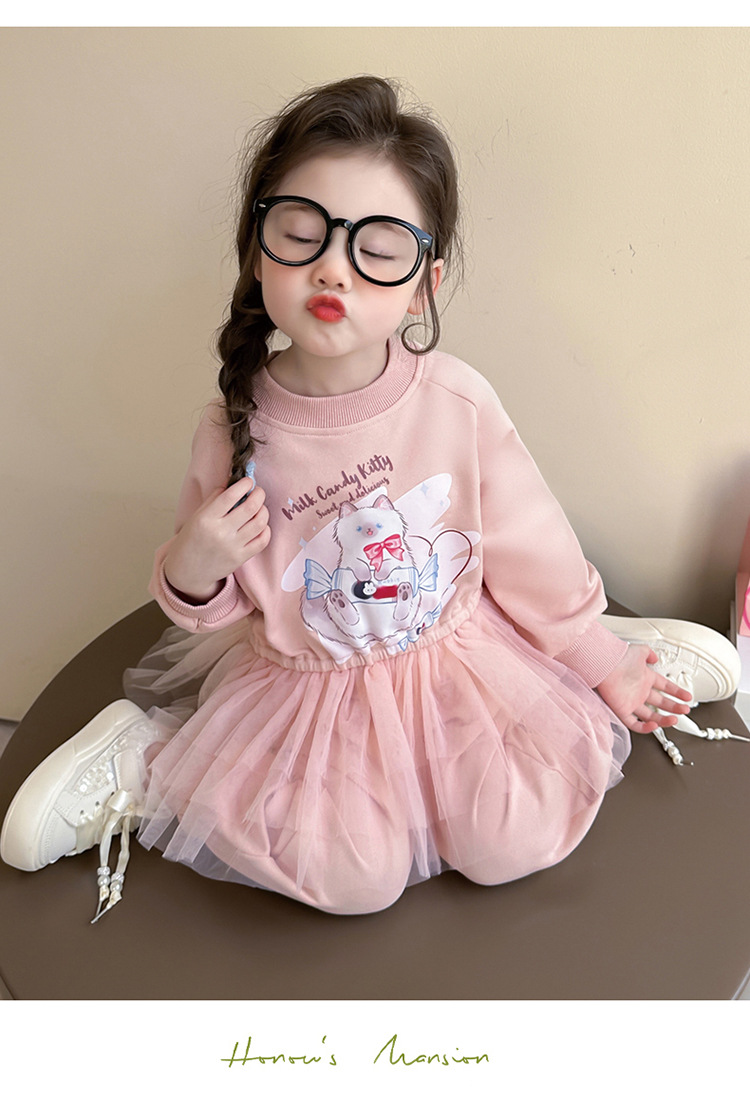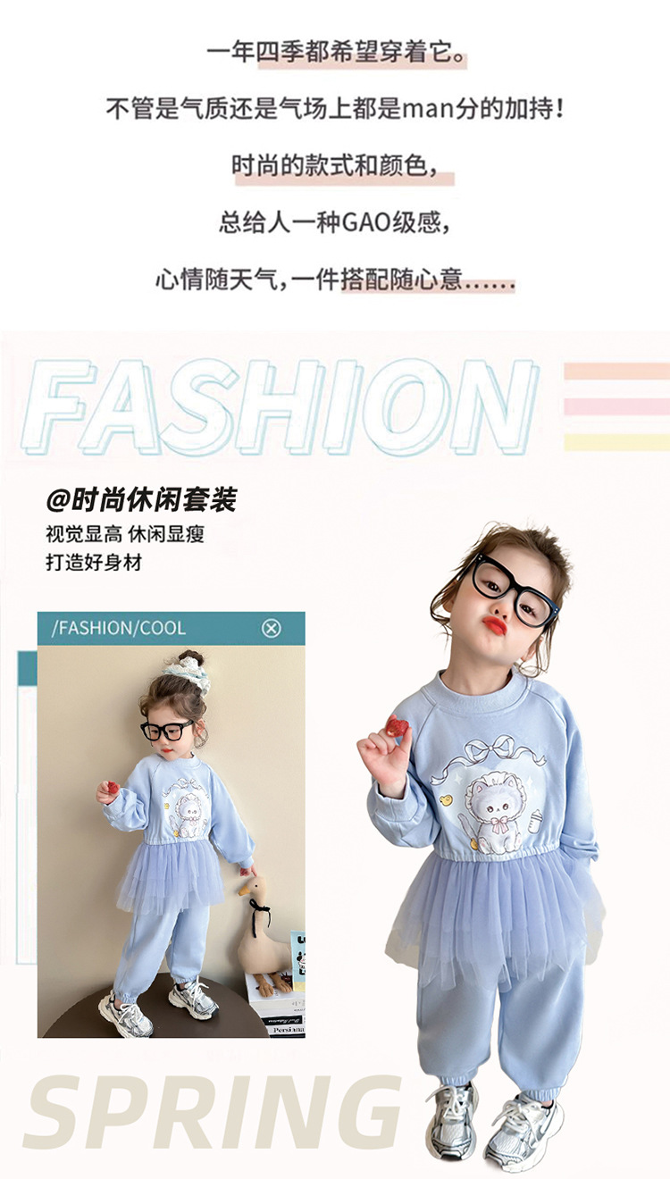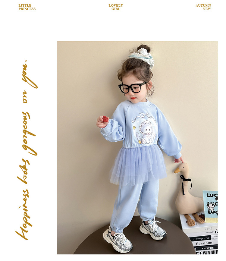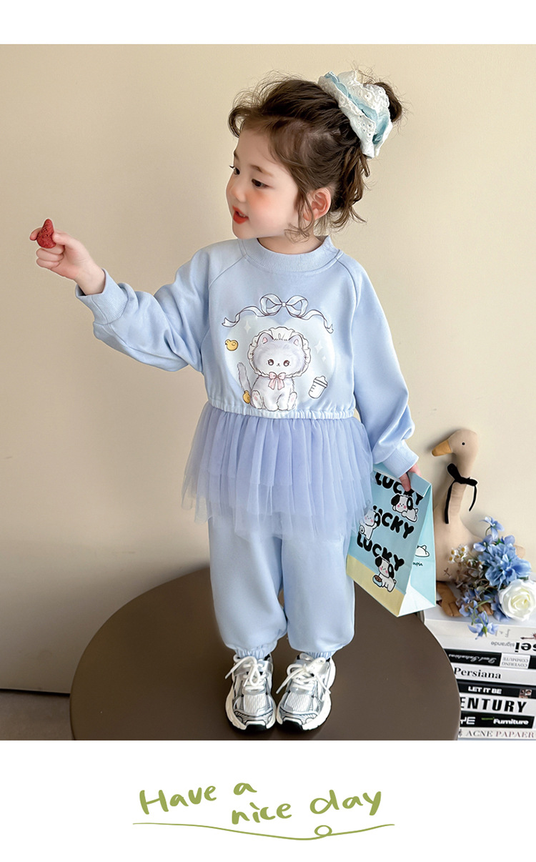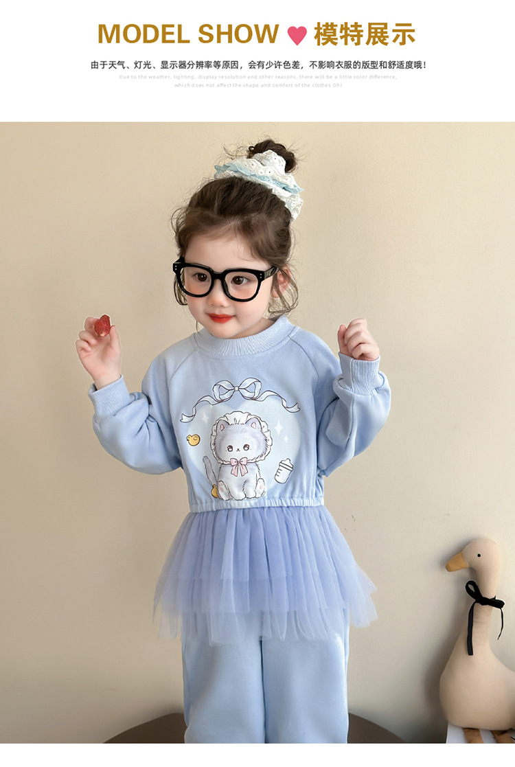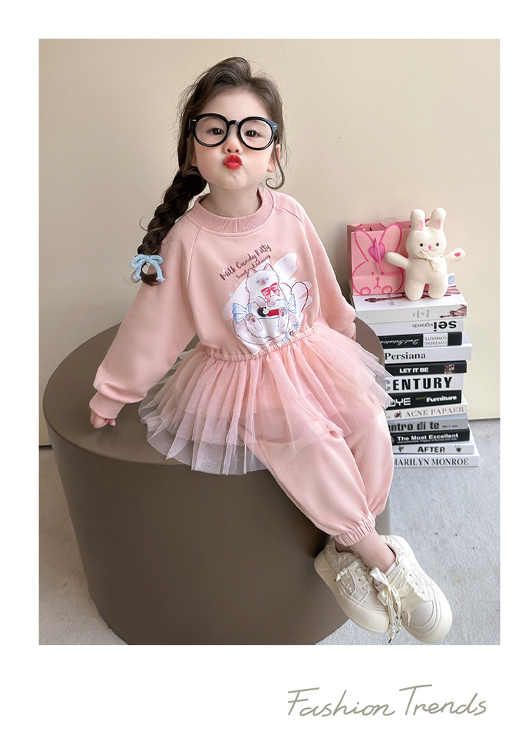 소녀의 고양이 메쉬 공주 세트 2025 봄과 가을 새 소녀의 유행 두 조각 어린이 옷스토어 가기