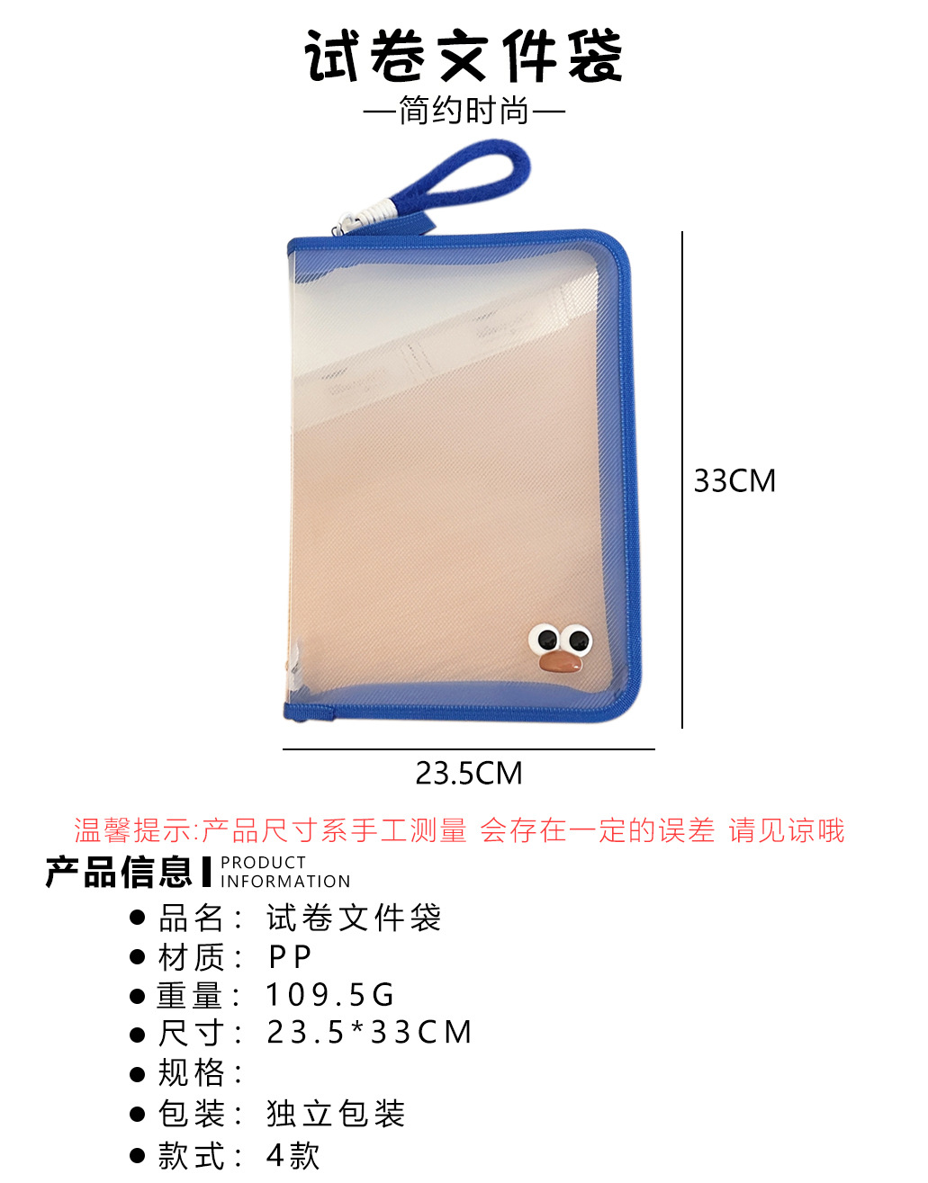 다채로운 대용량 문서 가방 학생 시험 투명 문서 가방 핸드백 A4 지퍼 테스트 용지 보관 가방 도매스토어 가기