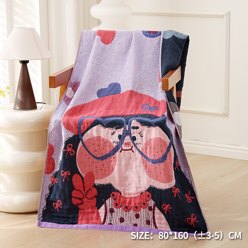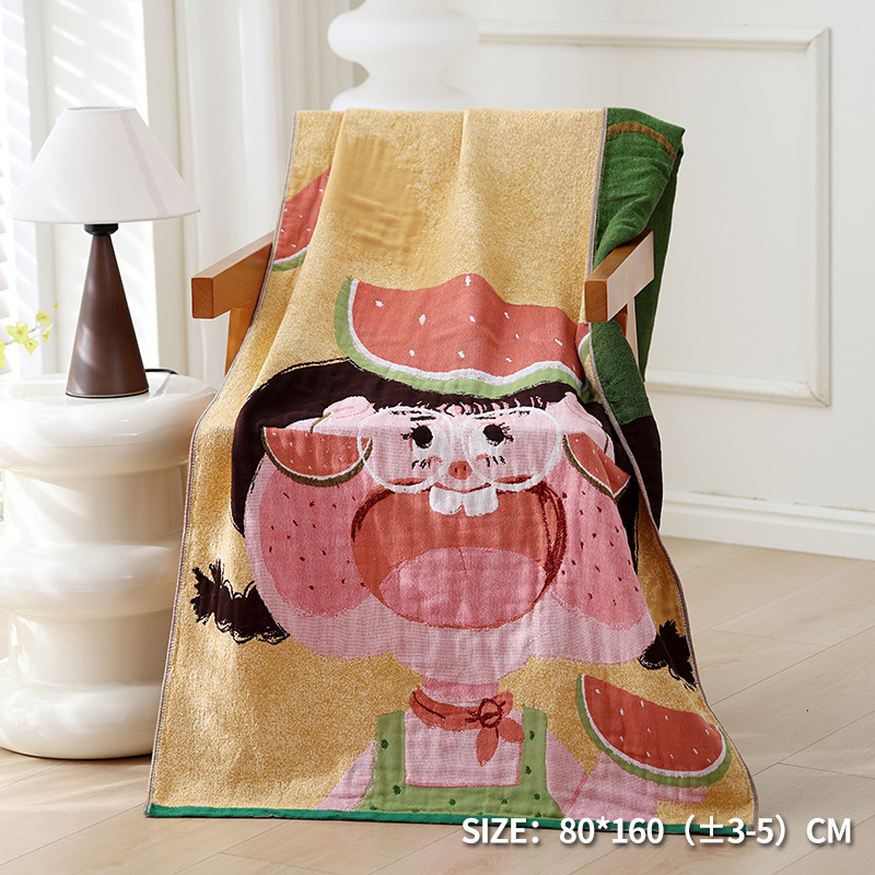 면 만화 목욕 타월 도매 성인 가정용 부드러운 흡수성 목욕 랩 타월 추가 두꺼운 4 층 거즈 목욕 타월