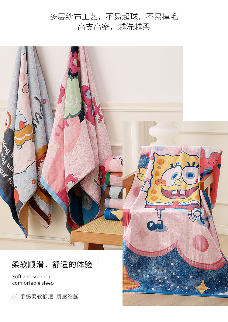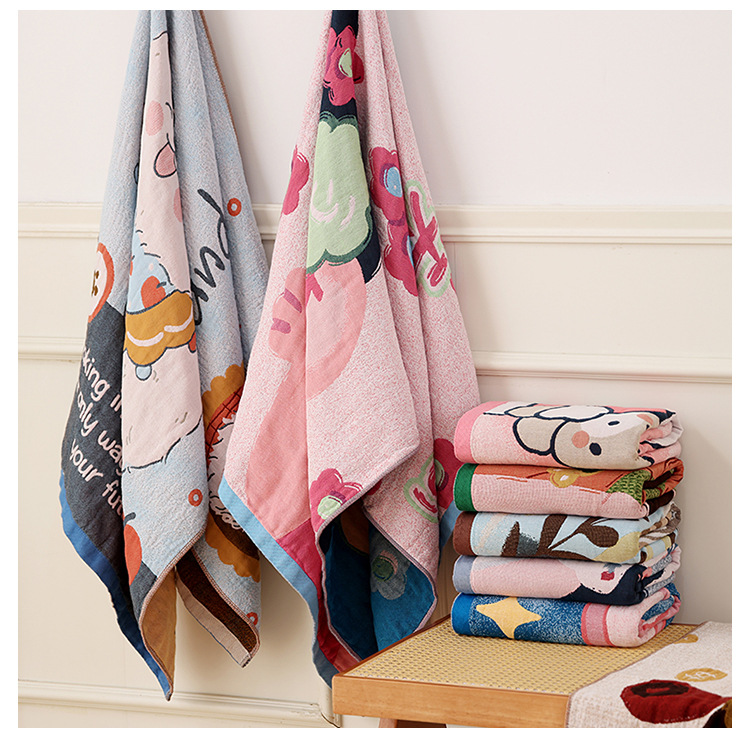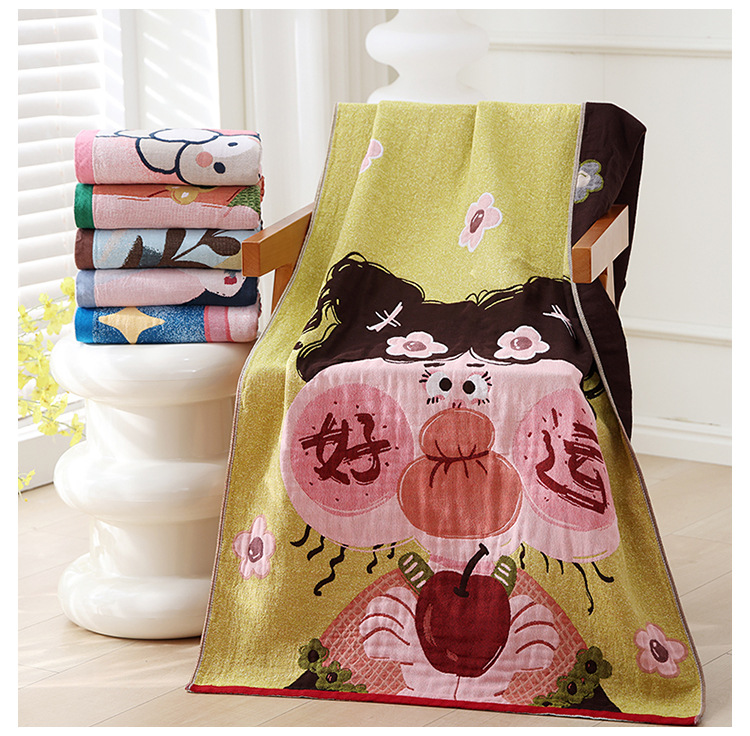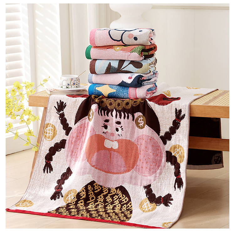 면 만화 목욕 타월 도매 성인 가정용 부드러운 흡수성 목욕 랩 타월 추가 두꺼운 4 층 거즈 목욕 타월스토어 가기