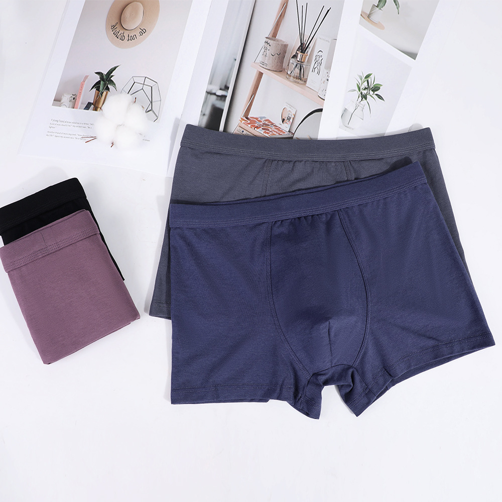 남성용 속옷 단색 높은 탄성 편안한 트랙이없는 미중 허리 소년 반바지 4 계절 피부 친화적 인 땀 흡수 Combed Cotton Boxer Pants
