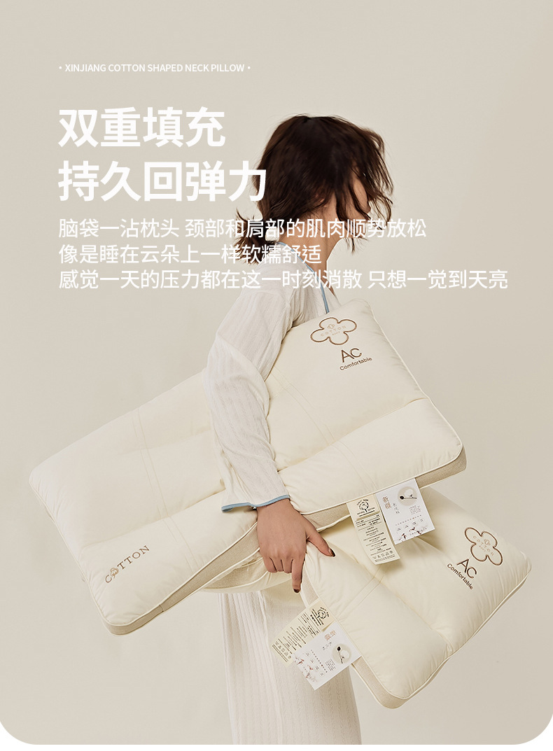 새로운 스타일 깃털 벨벳 신강 면 금형 베개 빨 수있는 높은 탄성 편안한 목 베개 깊은 잠자는 검은 기술 베개 핵심스토어 가기