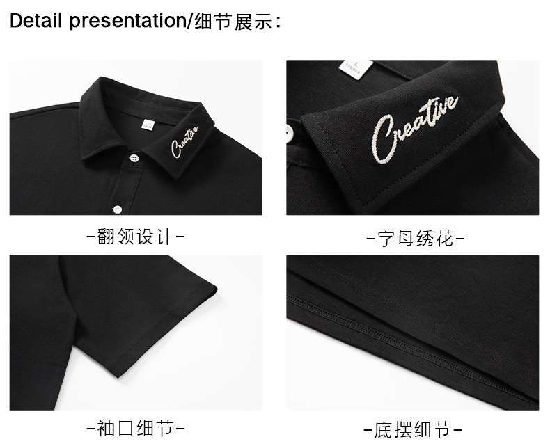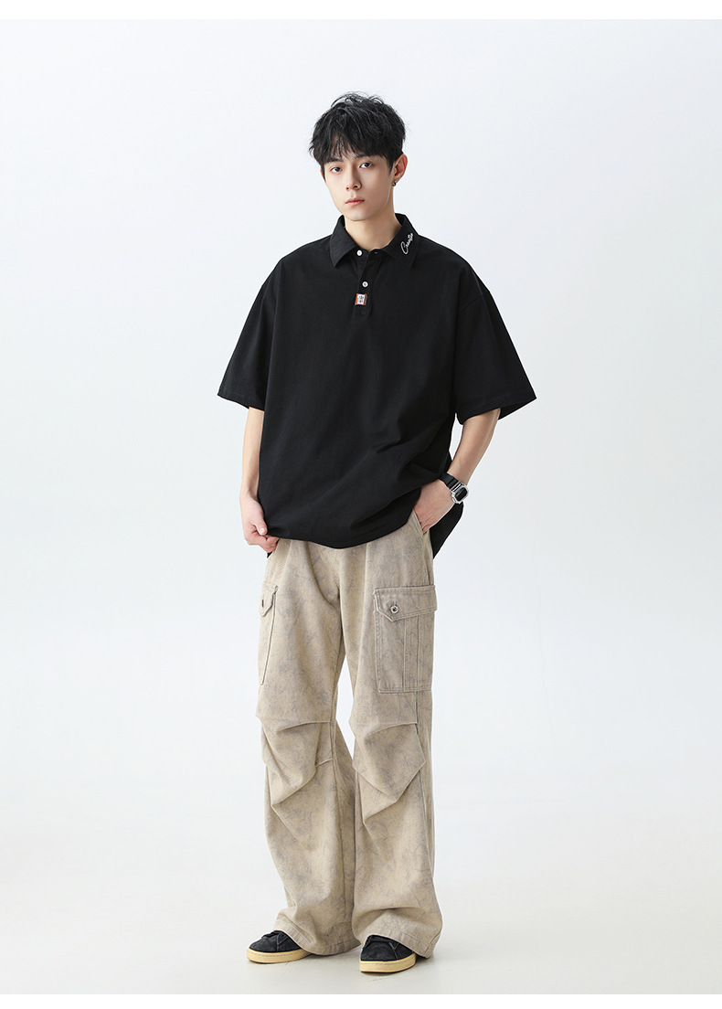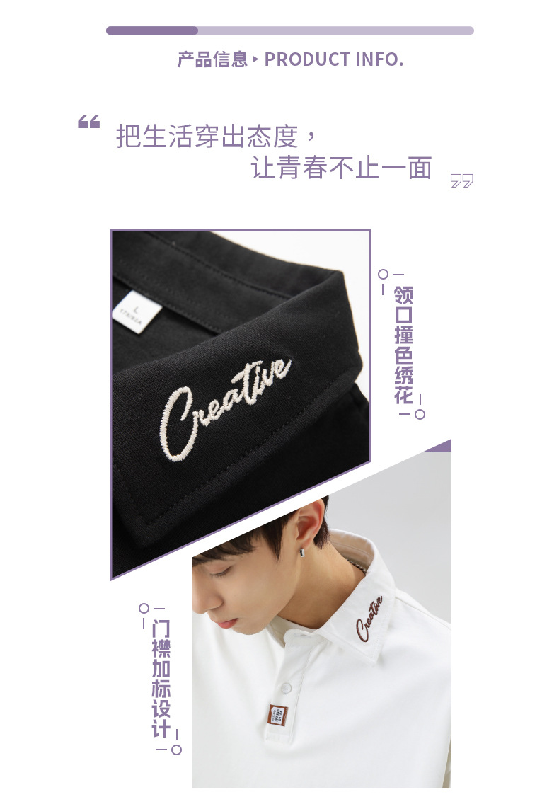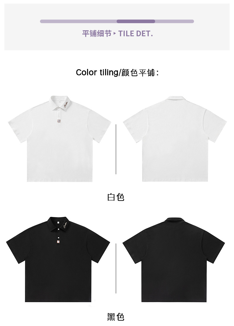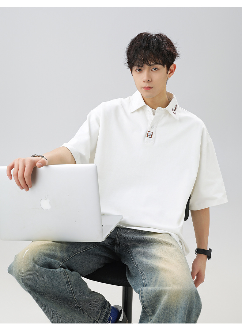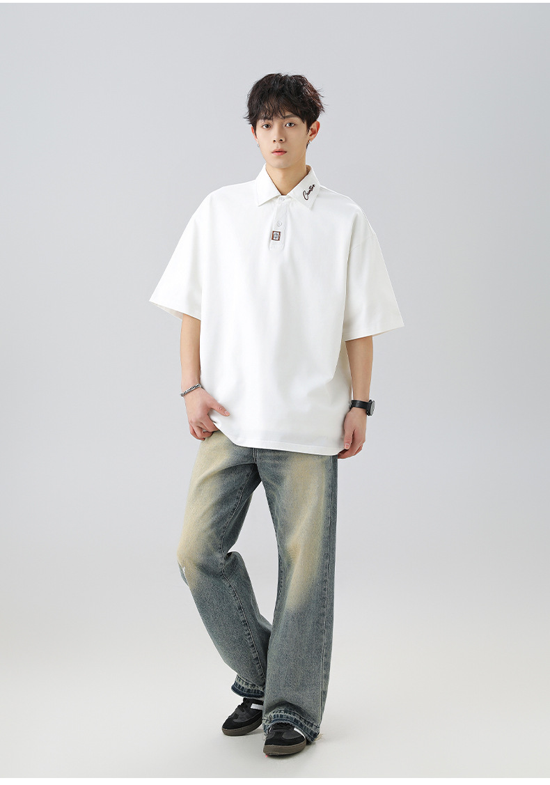 칼라에 대비되는 색상의 문자 자수가 있는 반팔 폴로셔츠 남성용 25 여름 스타일 일본식 루즈핏 순면 반팔 티셔츠 상의