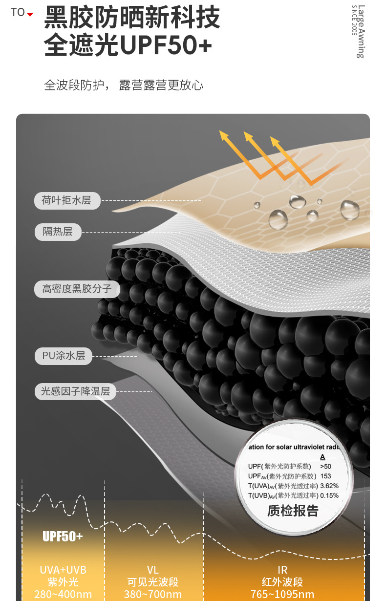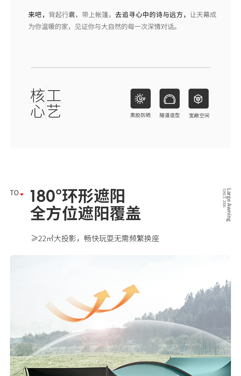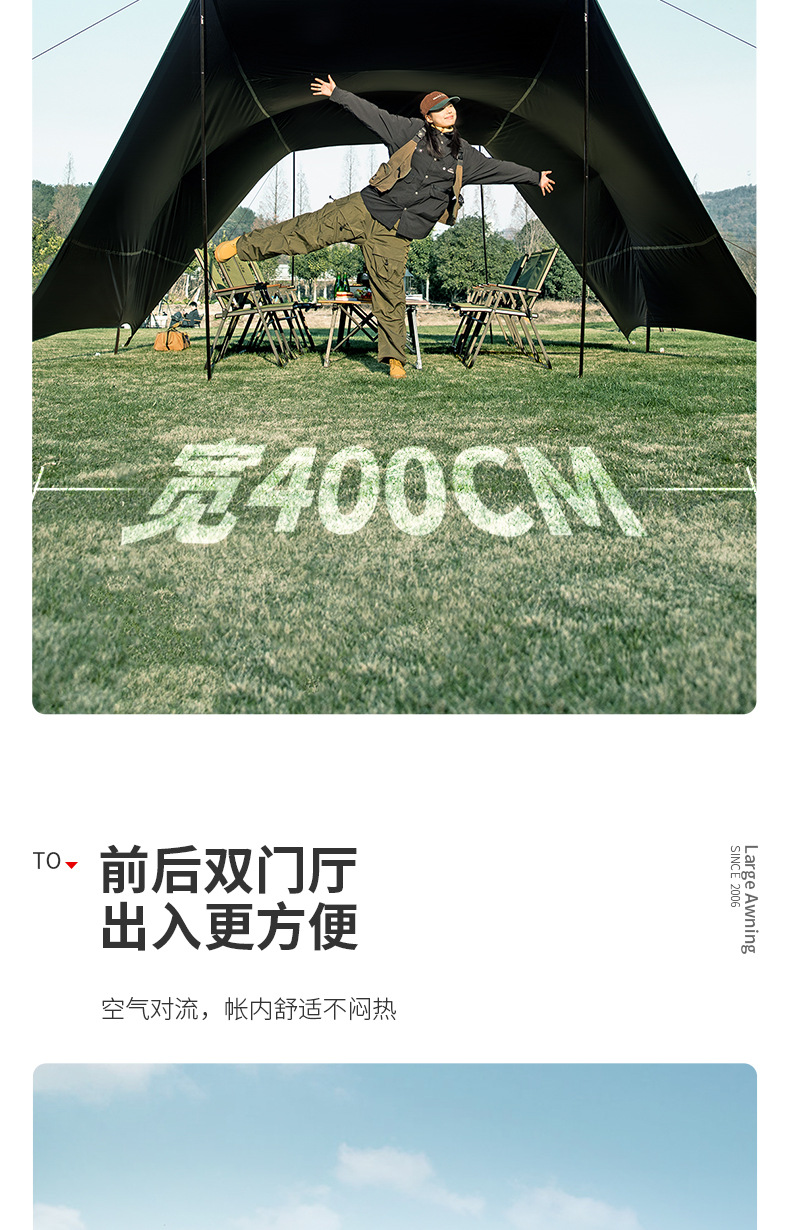 Beishan Wolf 야외 접이식 휴대용 터널 텐트 블랙 접착제 선스크린 대형 캐노피 캠핑 완벽한 장비