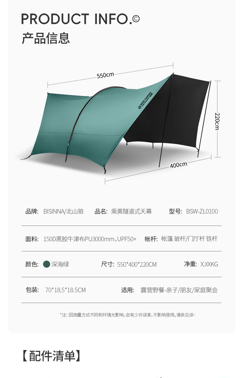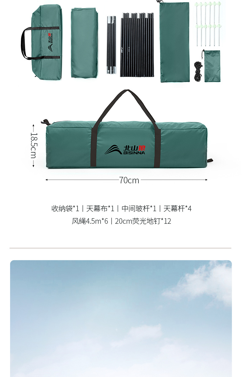 Beishan Wolf 야외 접이식 휴대용 터널 텐트 블랙 접착제 선스크린 대형 캐노피 캠핑 완벽한 장비스토어 가기