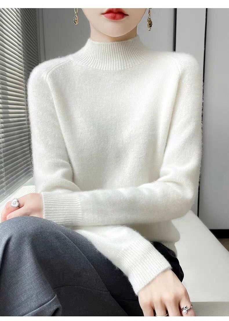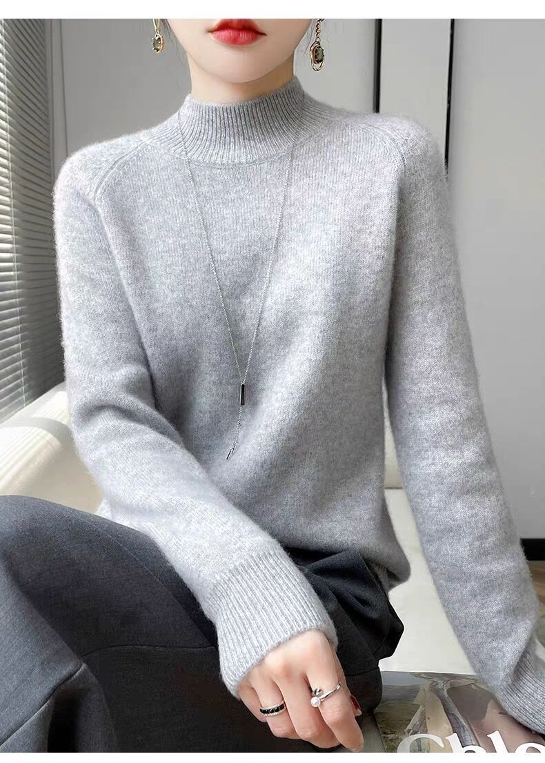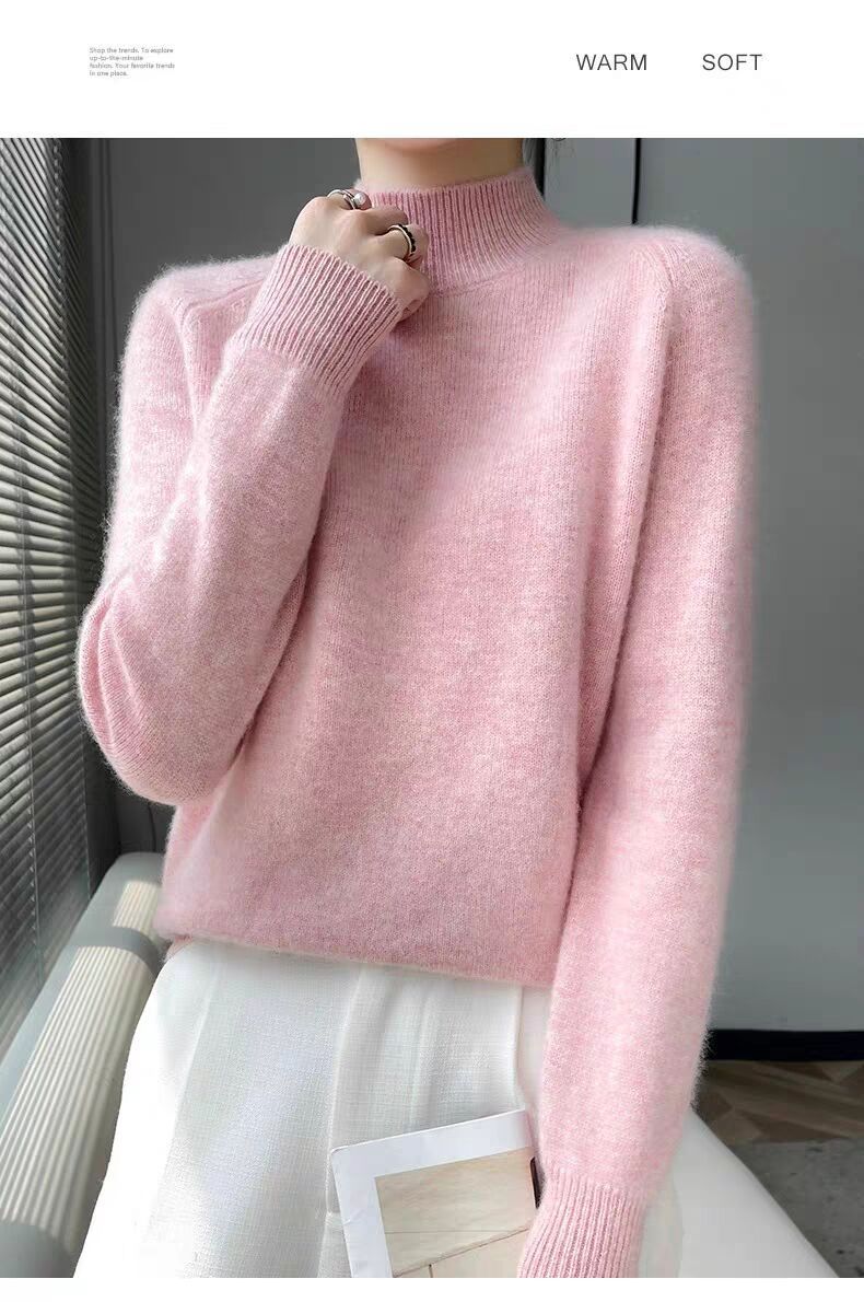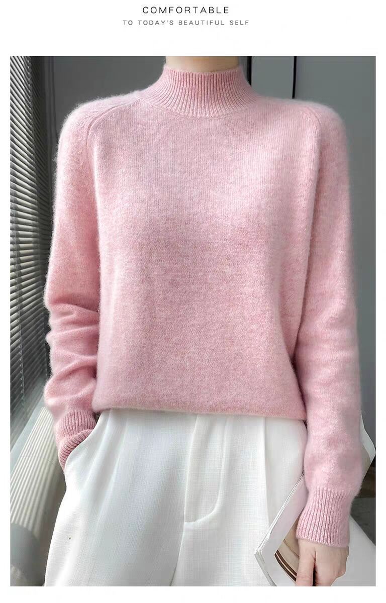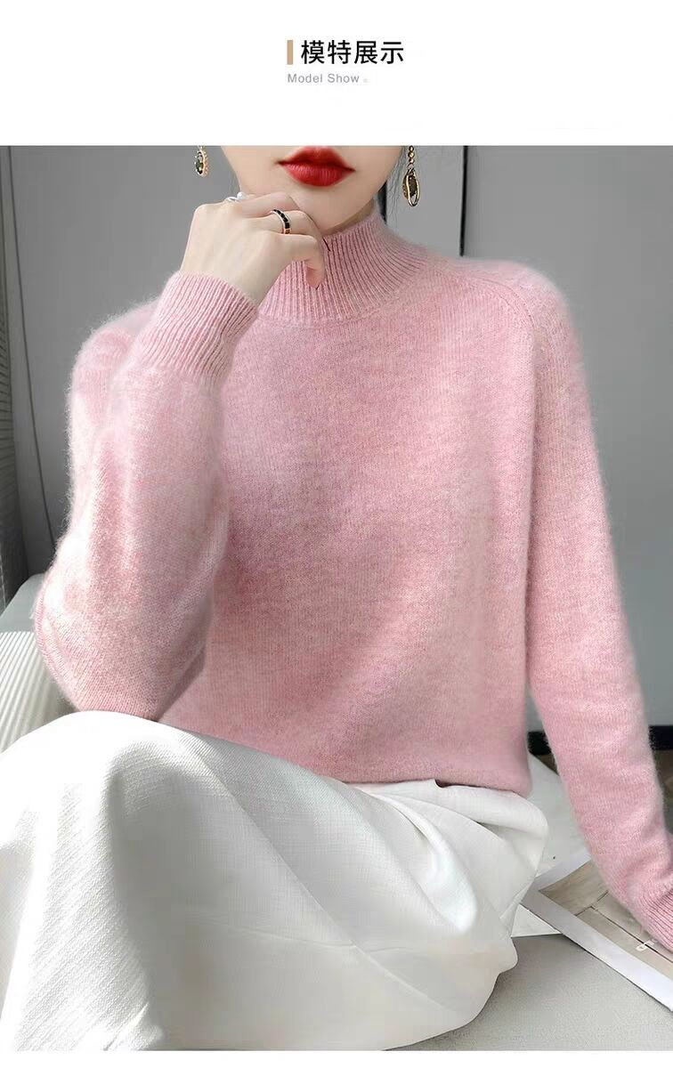 새로운 폭발 Tongxiang Puyuan 스웨터 여성의 2024 년 새로운 가을 및 겨울 반 높이 칼라 퍼스트 라인 리드 메이드 의류 느슨한 플러스 헤어