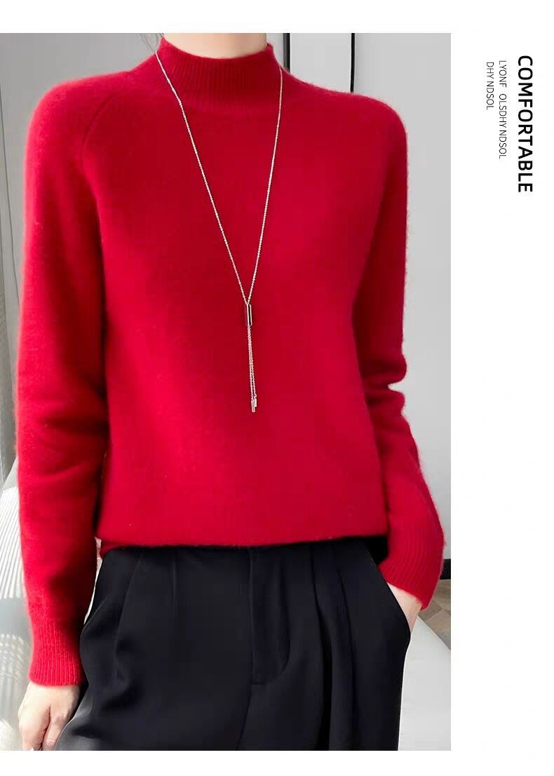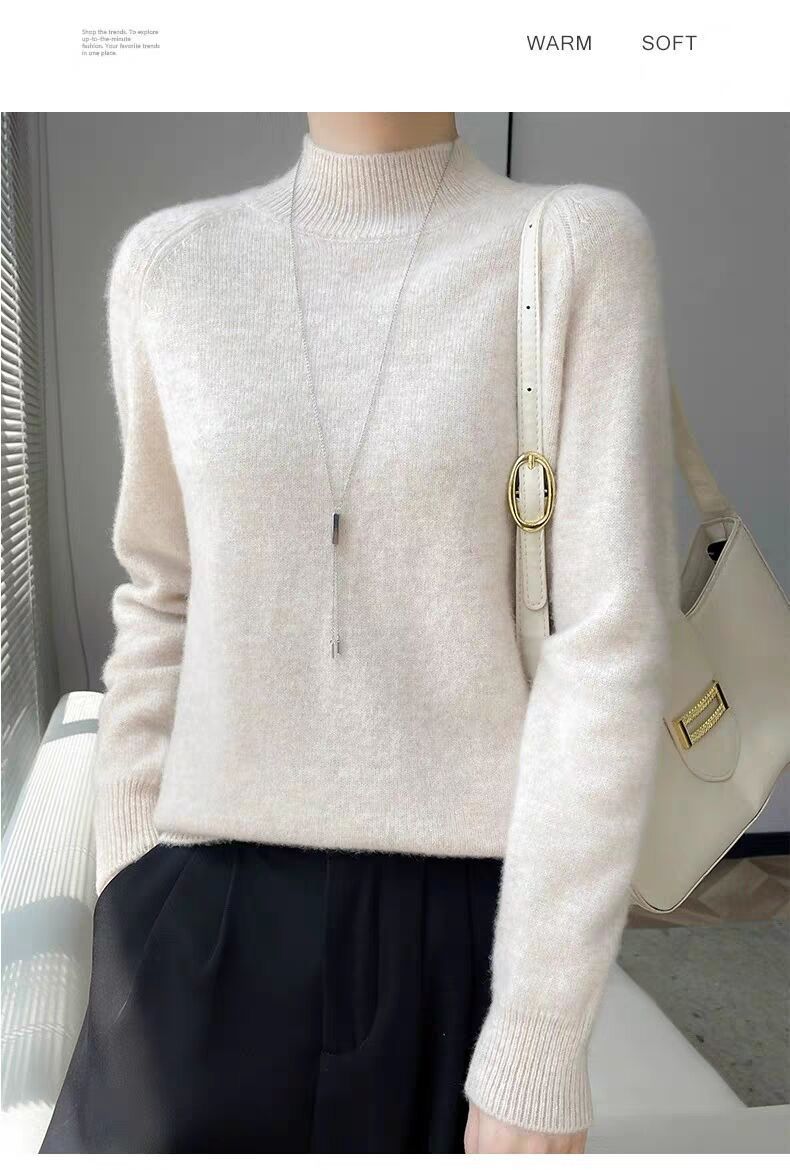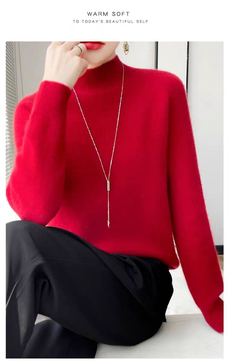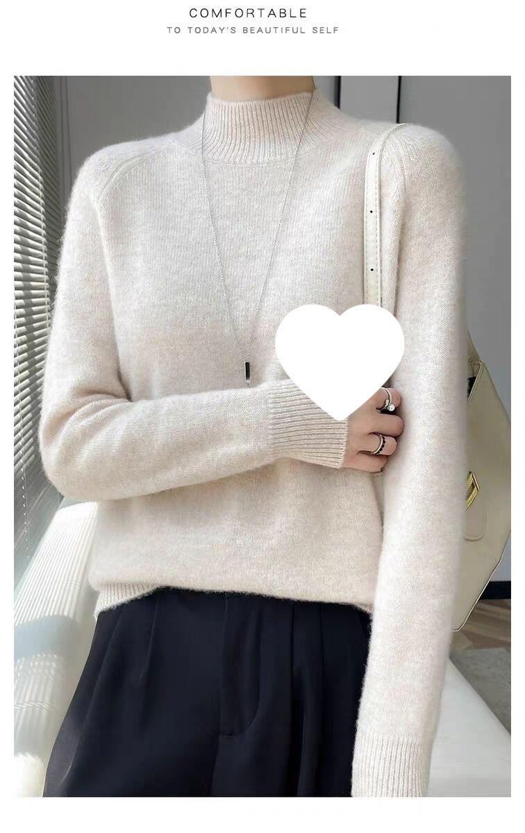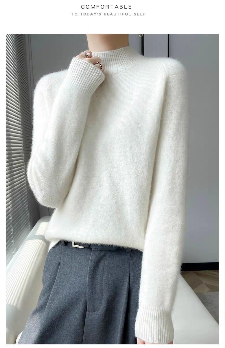새로운 폭발 Tongxiang Puyuan 스웨터 여성의 2024 년 새로운 가을 및 겨울 반 높이 칼라 퍼스트 라인 리드 메이드 의류 느슨한 플러스 헤어
