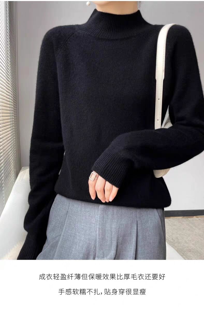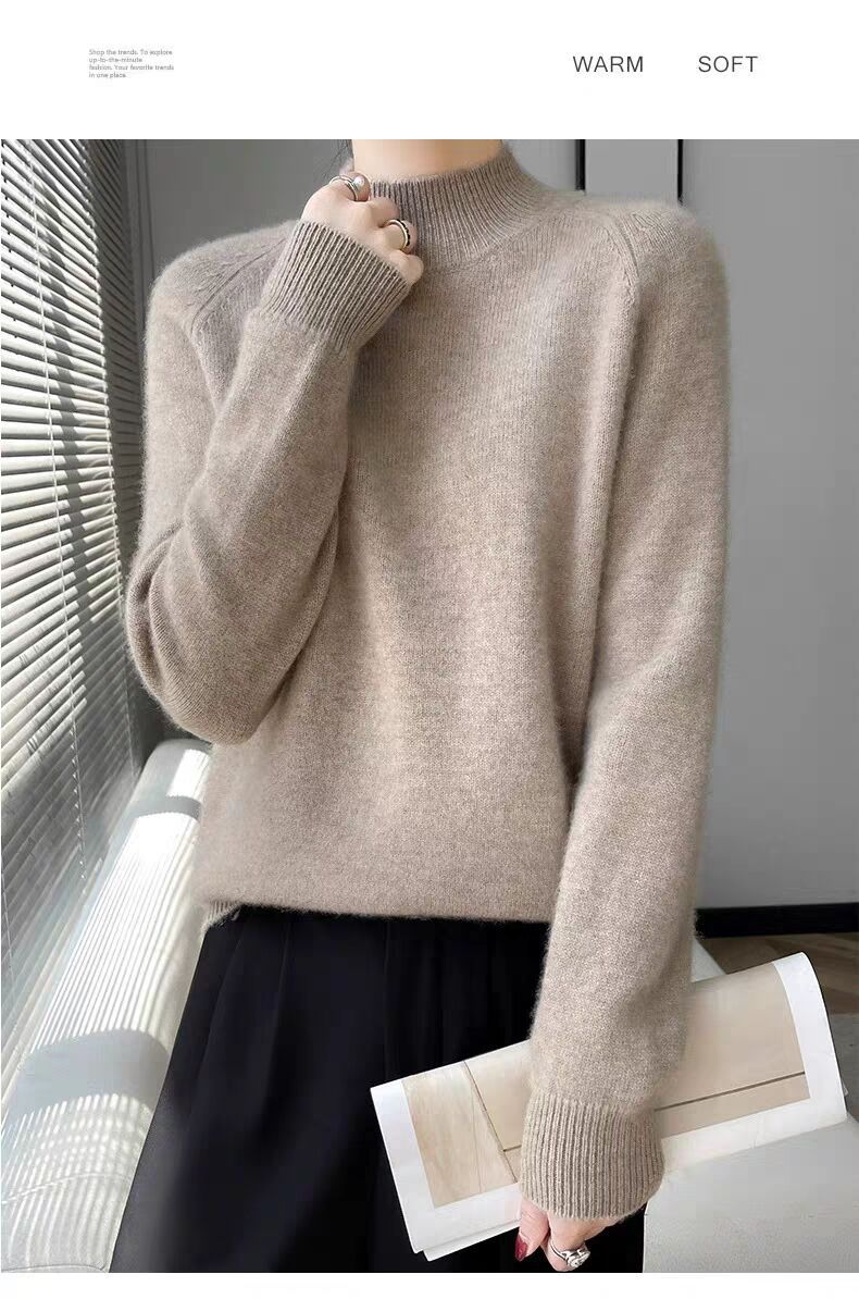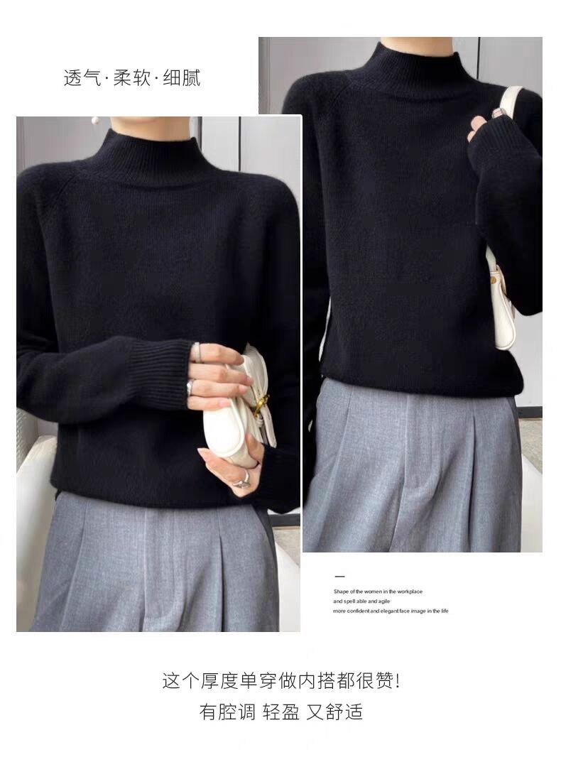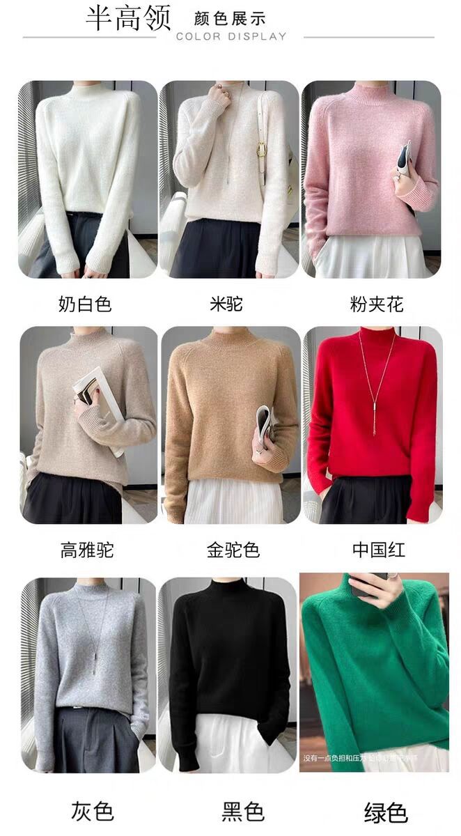 새로운 폭발 Tongxiang Puyuan 스웨터 여성의 2024 년 새로운 가을 및 겨울 반 높이 칼라 퍼스트 라인 리드 메이드 의류 느슨한 플러스 헤어스토어 가기