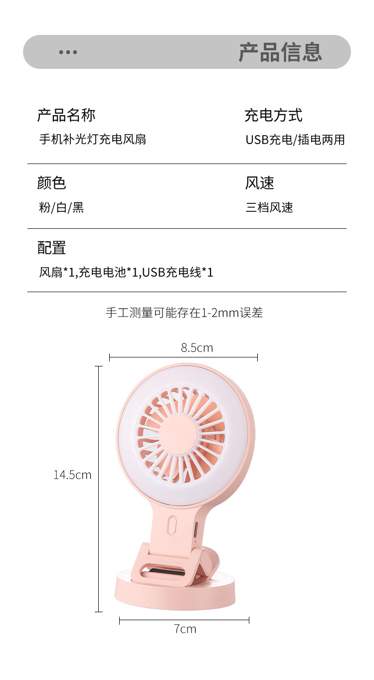 USB 충전식 포켓 폰 클립 라이트 충전 팬 데스크탑 미니 클립 팬 접이식 팬 공장
