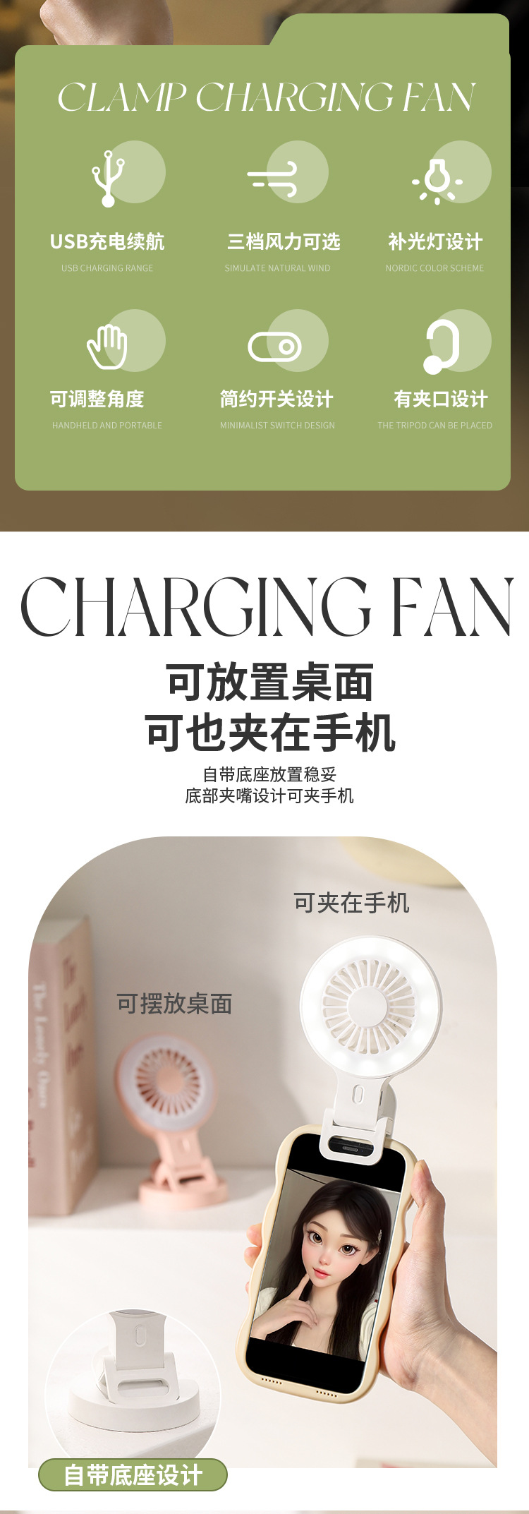 USB 충전식 포켓 폰 클립 라이트 충전 팬 데스크탑 미니 클립 팬 접이식 팬 공장스토어 가기