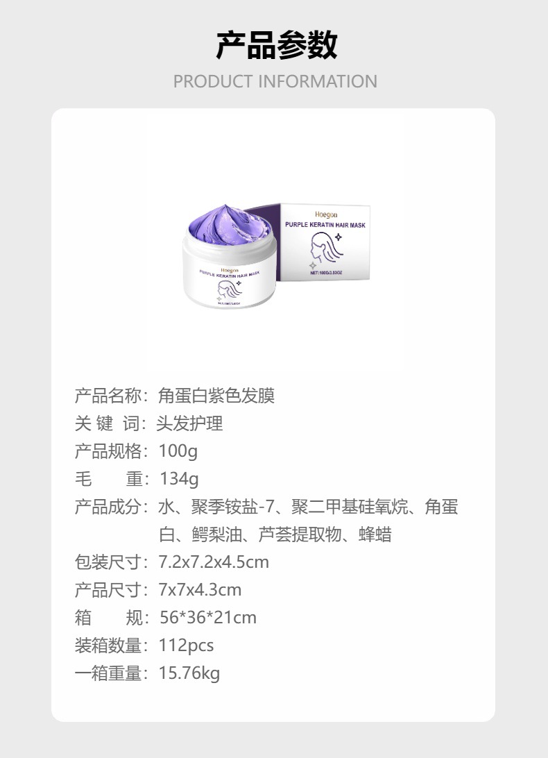 HOEGOA Keratin Purple Hair Mint 영양 및 보습 헤어 부드럽고 광택이 나는 헤어 민트