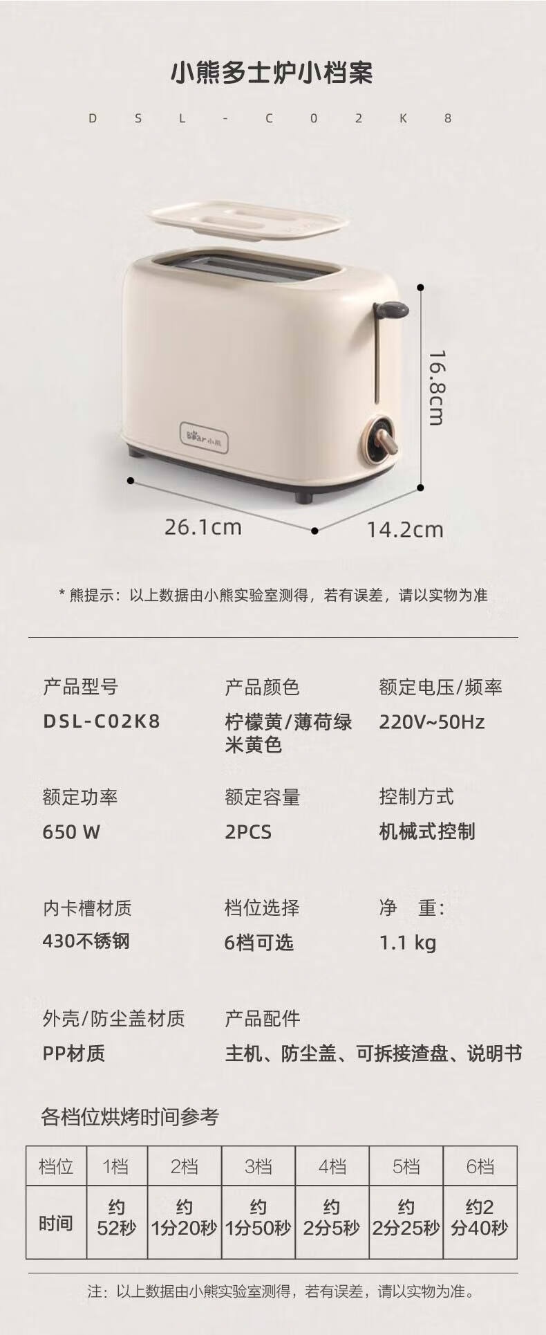 베어 토스터 DSL-C02K8 빵 기계 가정용 다기능 완전 자동 아침 식사 기계 베이킹 6 속도 토스터