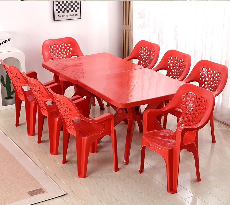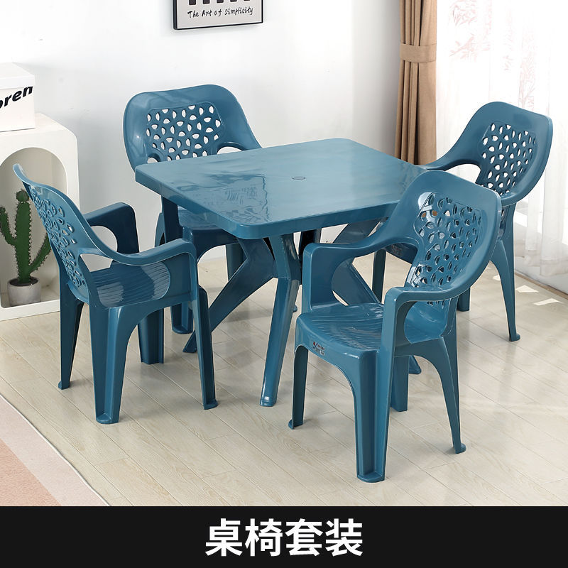 간단한 두꺼운 플라스틱 테이블과 의자 세트 단단한 식당 식탁 식당 의자 조합 요리 접착제 성인 야외 의자 스택스토어 가기
