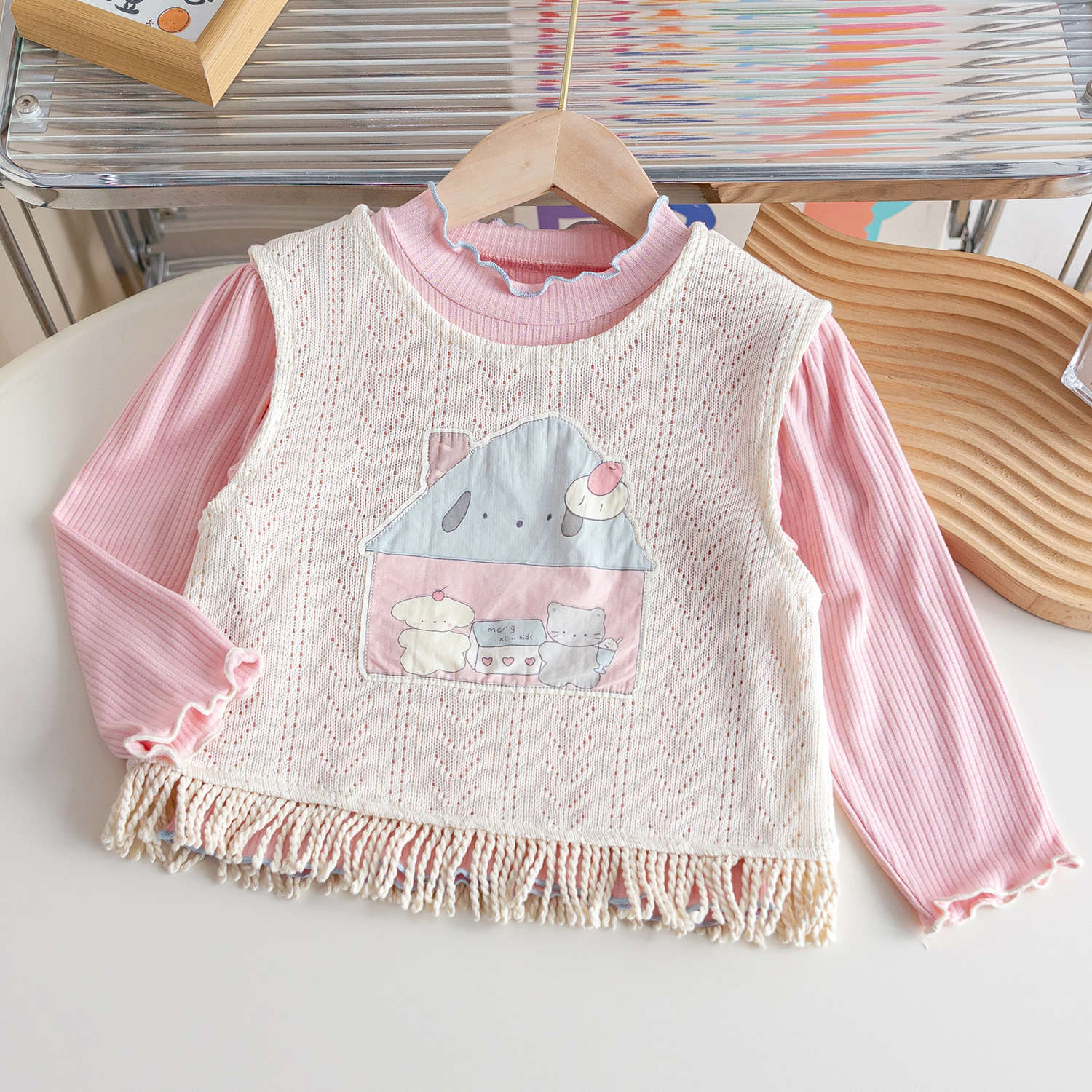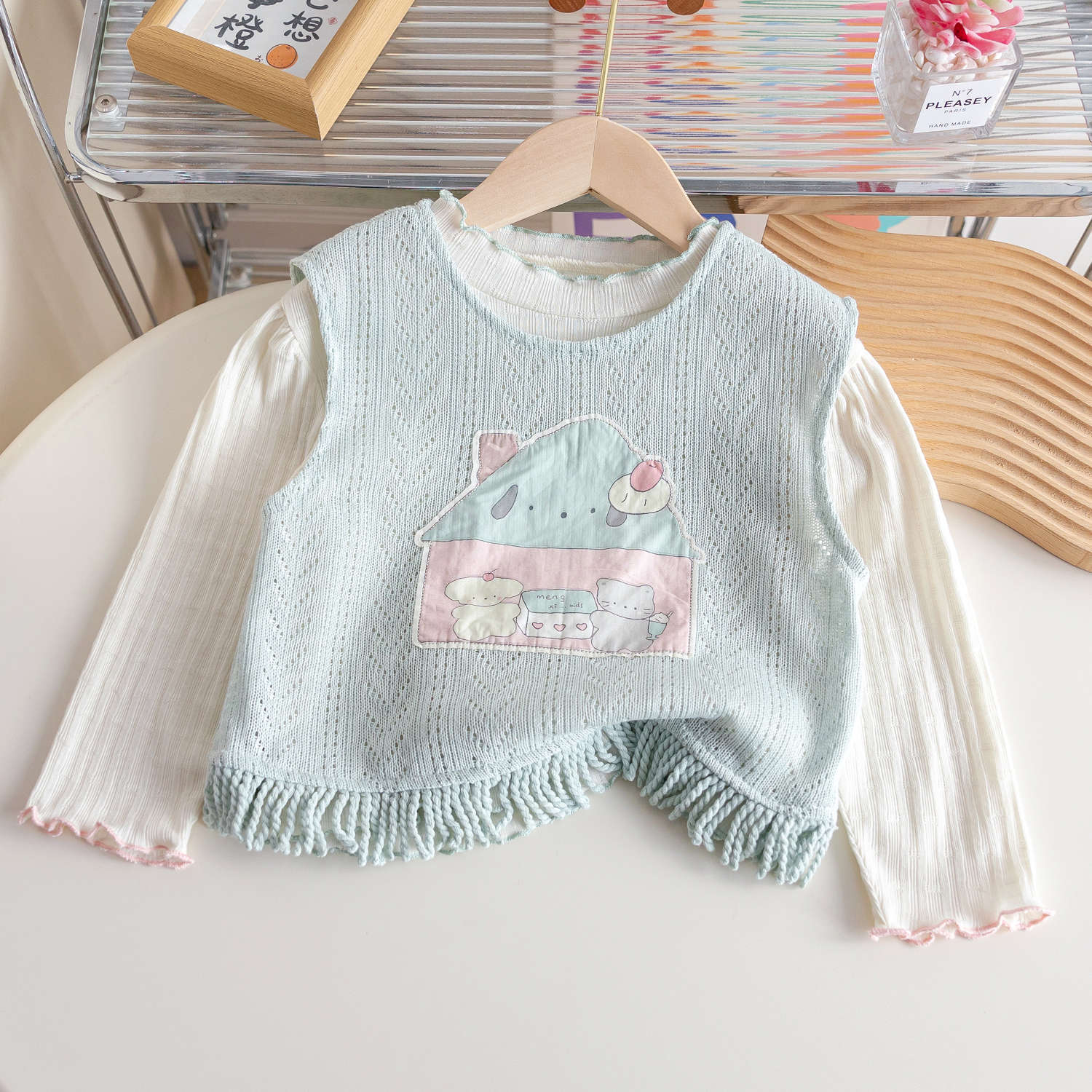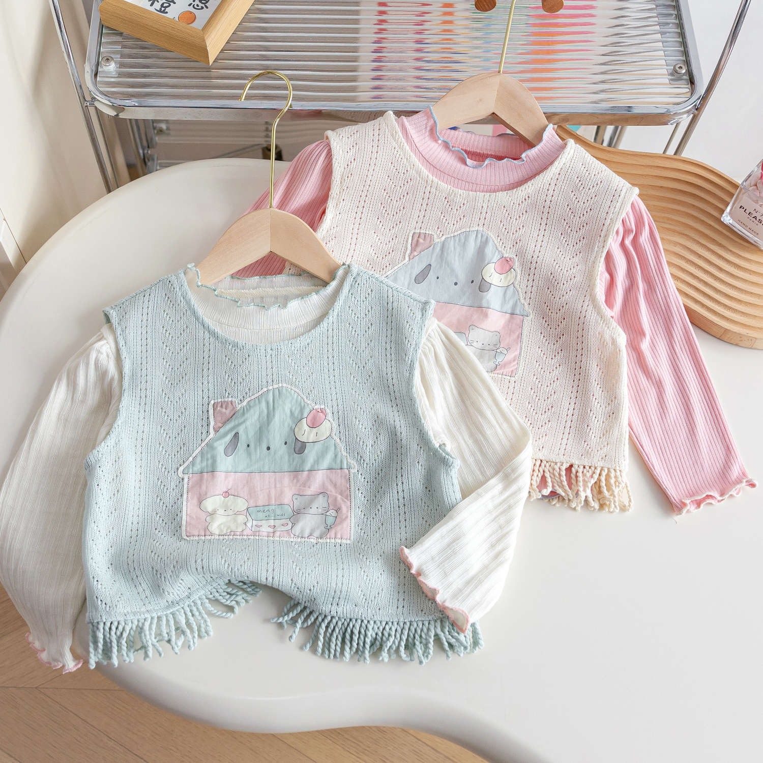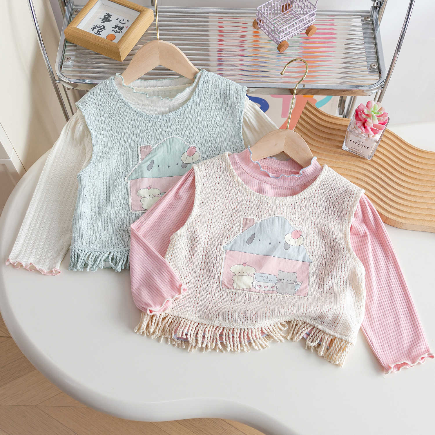 소녀들의 봄 새베이스 셔츠 긴팔 셔츠 올매치 한국식 만화 풀오버 패션 세련된 조끼 투피스 세트스토어 가기