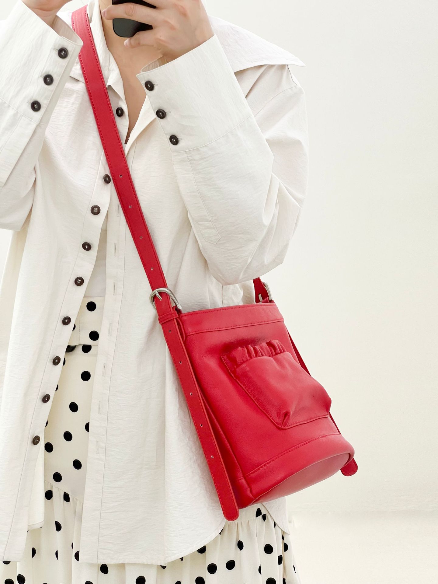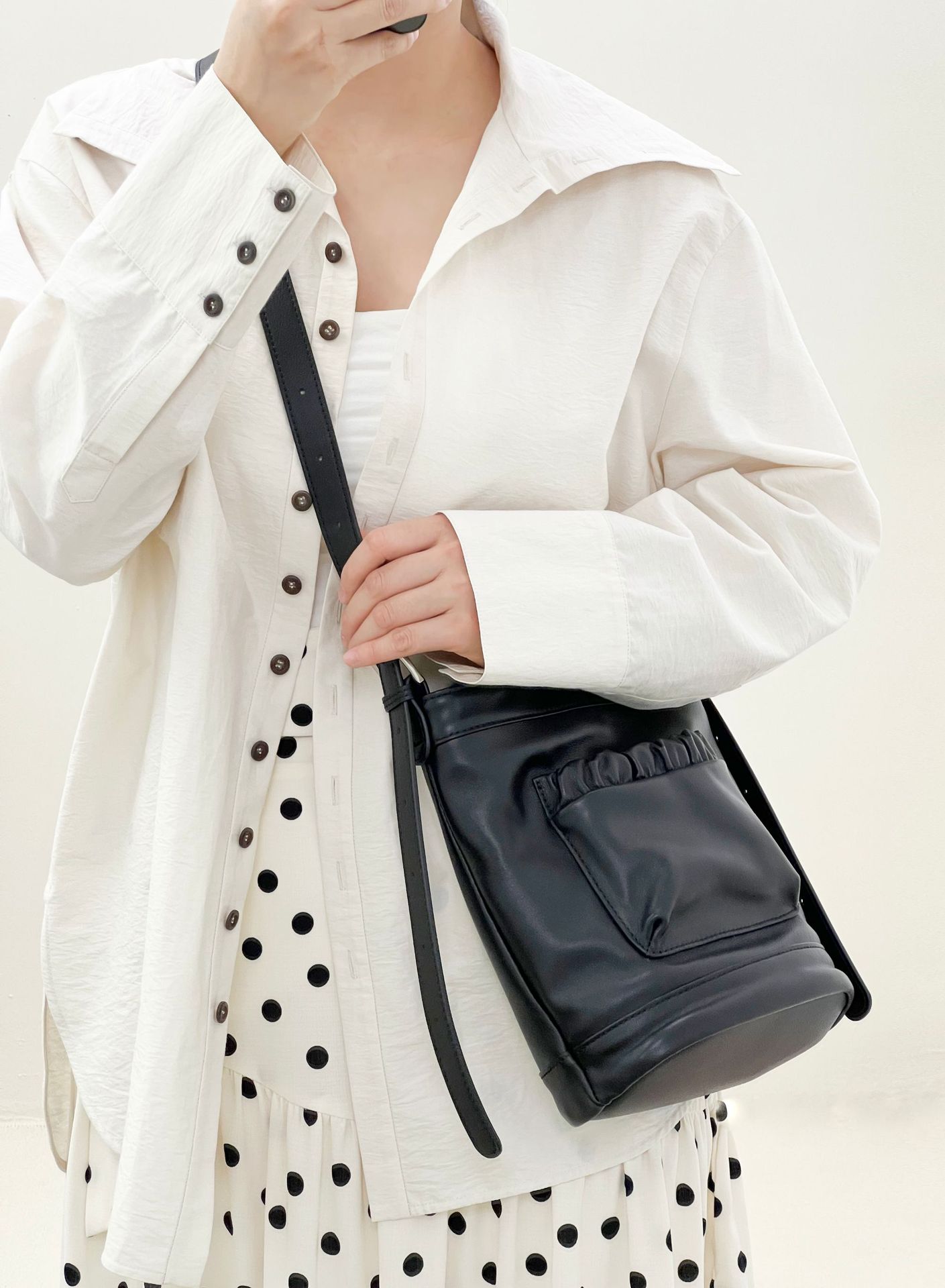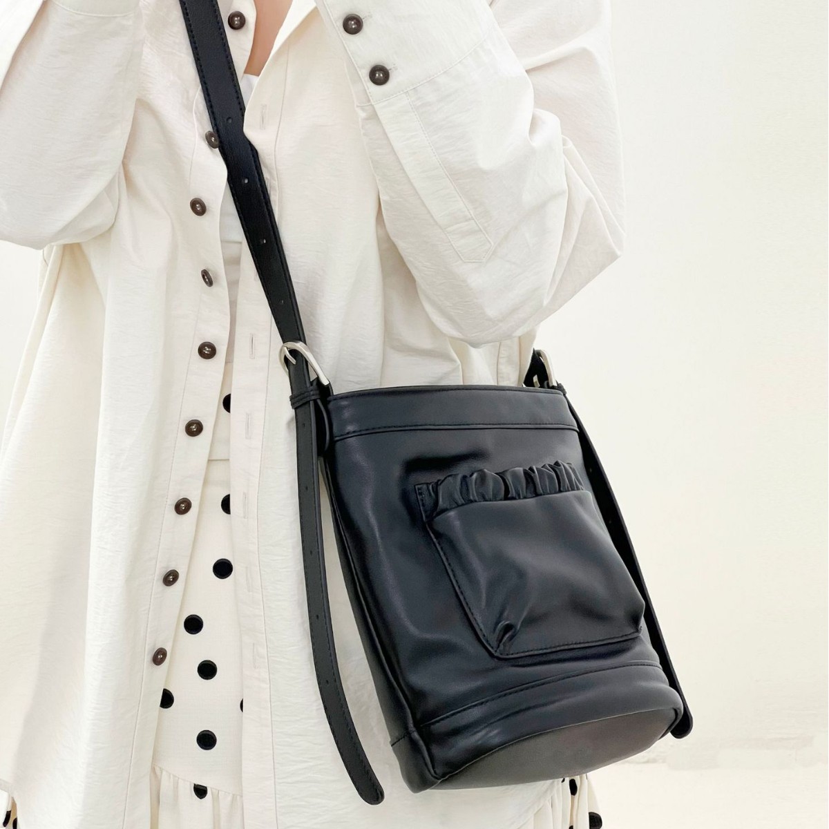 2025 봄 새로운 소프트 탑 레이어 소 가죽 작은 버킷 백 고급 올 매치 숄더 크로스 바디 백
