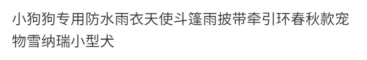 봄과 가을 특별한 판초 강아지 망토 방수 비옷 Shina Ruihuan 트랙션 천사 작은 개를 가진 애완 동물스토어 가기
