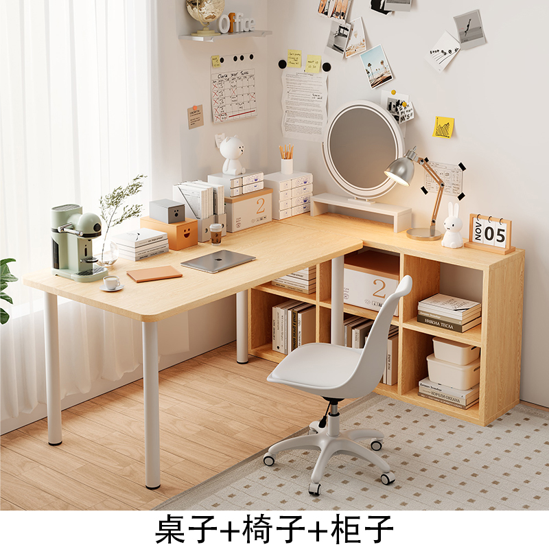 • 물푸레나무색 둥근 모서리 테이블 + 물푸레나무색 6칸 수납장
