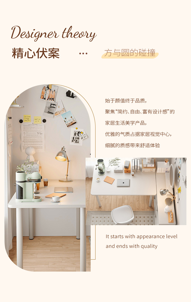 • 흰색 둥근 모서리 테이블 + 흰색 6칸 캐비닛