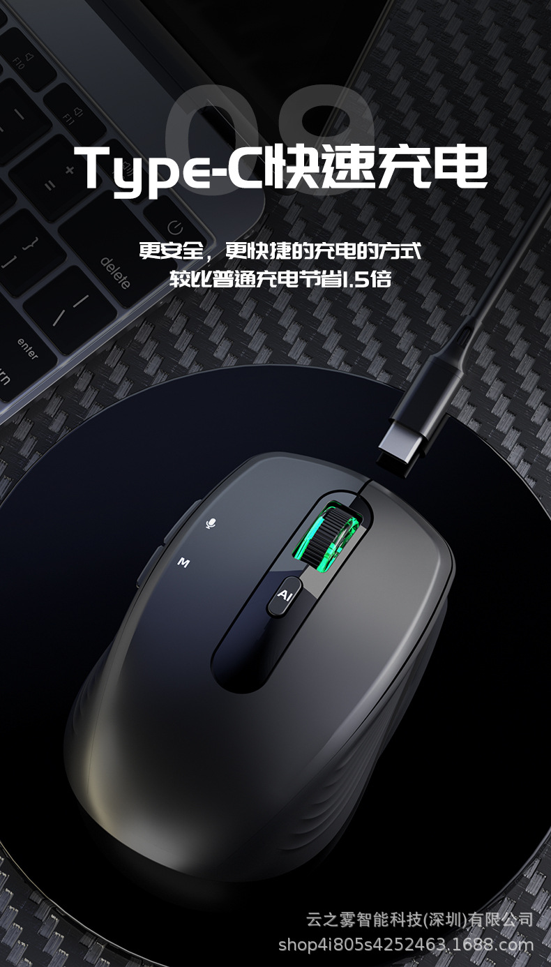 Ai 스마트 음성 마우스 무선 블루투스 듀얼 모드 음성 제어 입력 음성 인식 번역 쓰기 일반 공장 직접